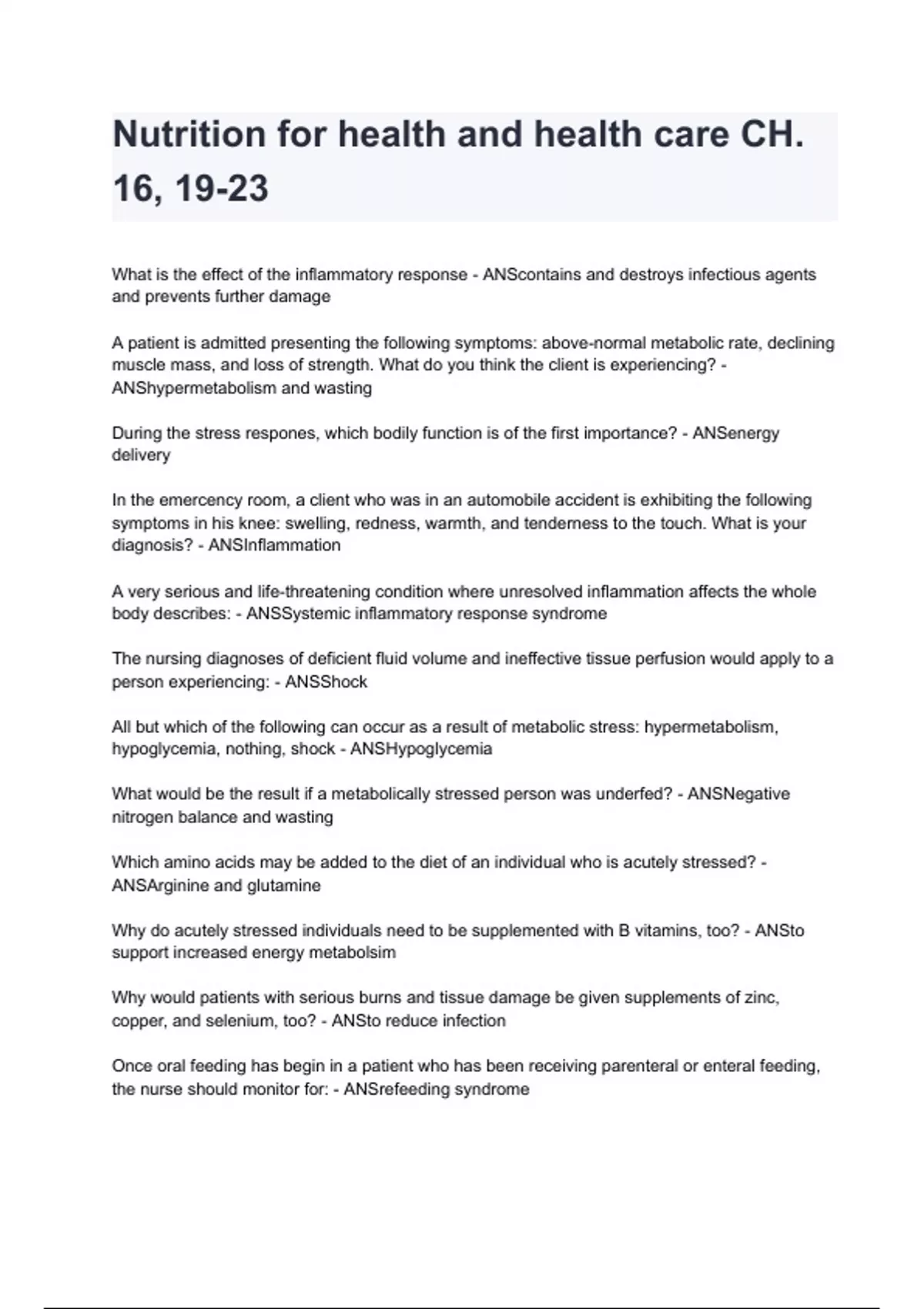 Nutrition for health and health care CH. 16, 19-23 Test bank