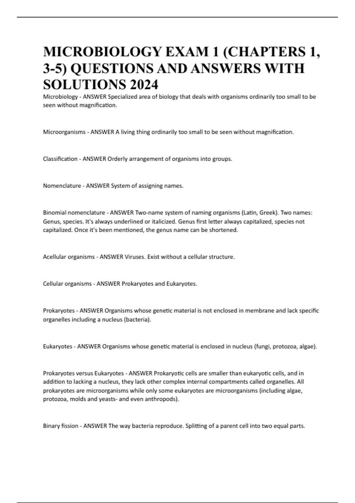 MICROBIOLOGY EXAM 1 (CHAPTERS 1, 3-5) QUESTIONS AND ANSWERS WITH SOLUTIONS 2024