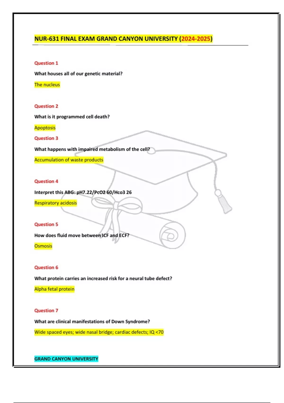 NUR-631 FINAL EXAM GRAND CANYON UNIVERSITY () Question 1 What houses all of our genetic material?