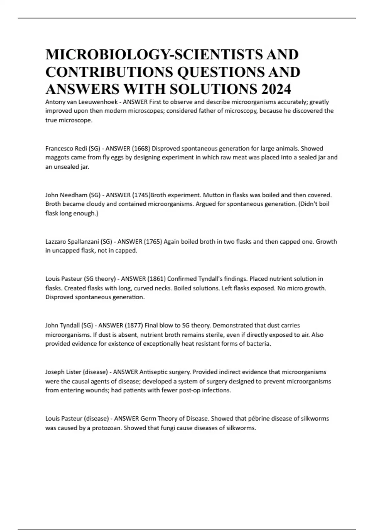 MICROBIOLOGY-SCIENTISTS AND CONTRIBUTIONS QUESTIONS AND ANSWERS WITH SOLUTIONS 2024
