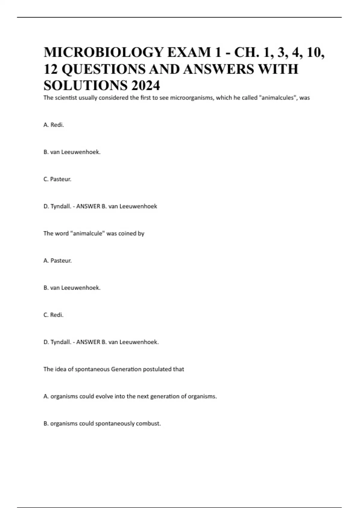 MICROBIOLOGY EXAM 1 - CH. 1, 3, 4, 10, 12 QUESTIONS AND ANSWERS WITH SOLUTIONS 2024