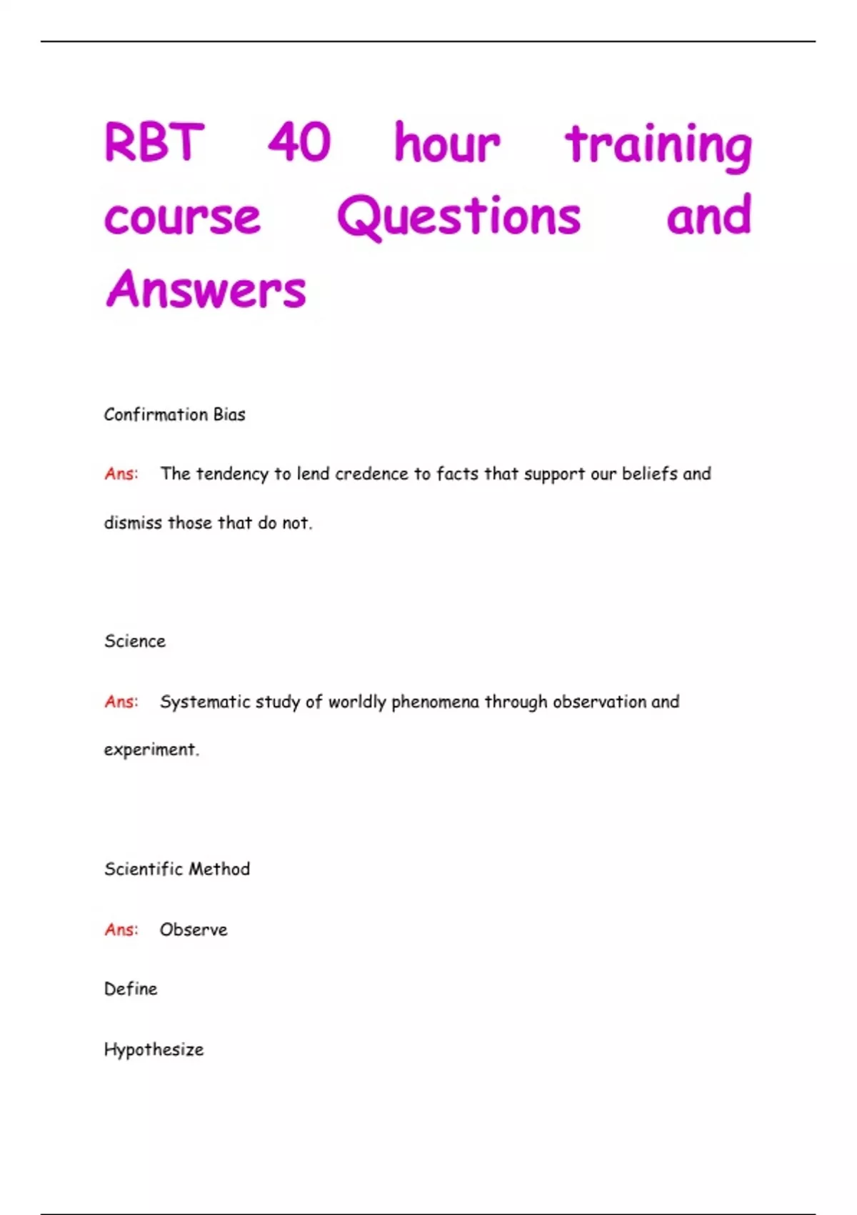 RBT 40 hour training course Questions and Answers