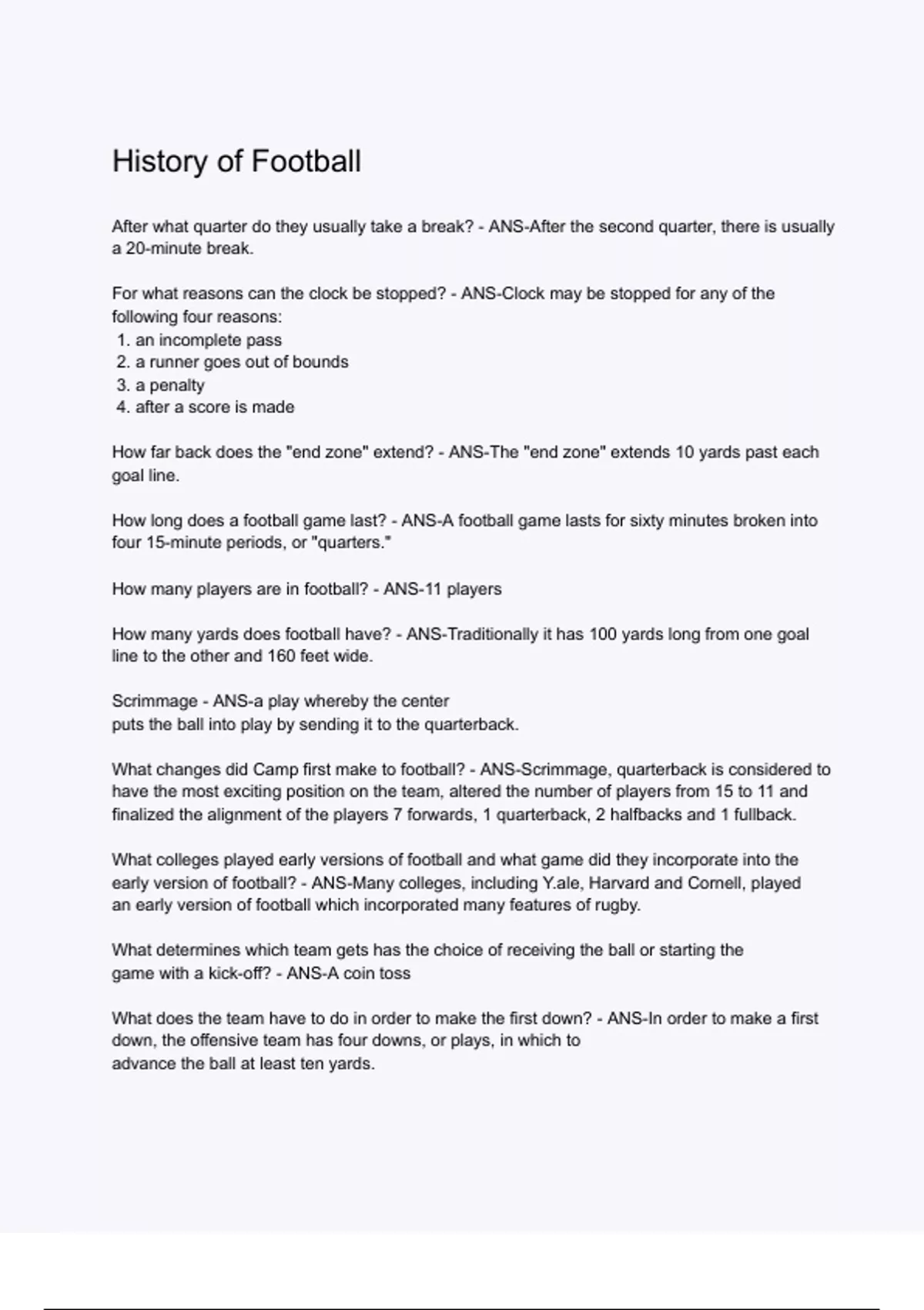 History of Football (2024/ 2025) Questions and Verified Answers| 100% Correct