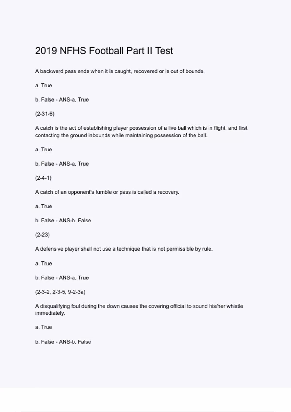 2019 NFHS Football Part II Test (2024/ 2025) Questions and Verified Answers| 100% Correct