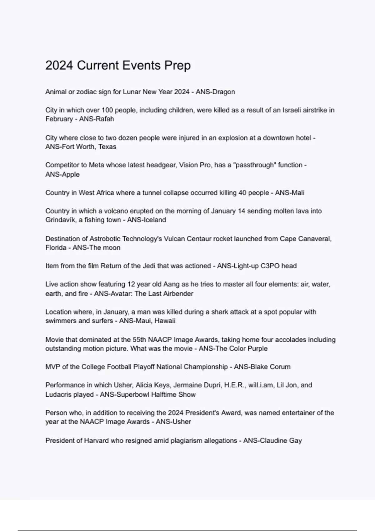 2024 Current Events Prep (2024/ 2025) Questions and Verified Answers| 100% Correct