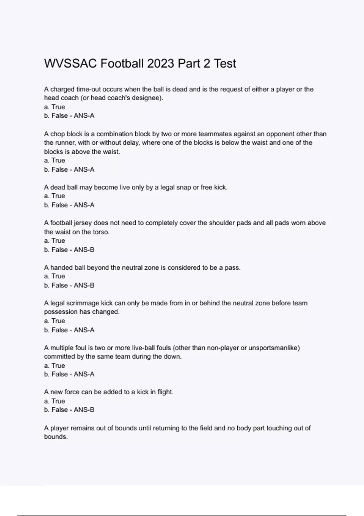 WVSSAC NFHS Part 2 Test exam 2024 with 100% correct answers