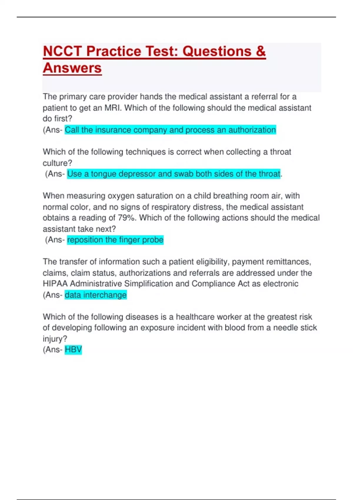 Practice Test)NCCT Practice Test: Questions & Answers:Updated: Guaranteed APlus Guide