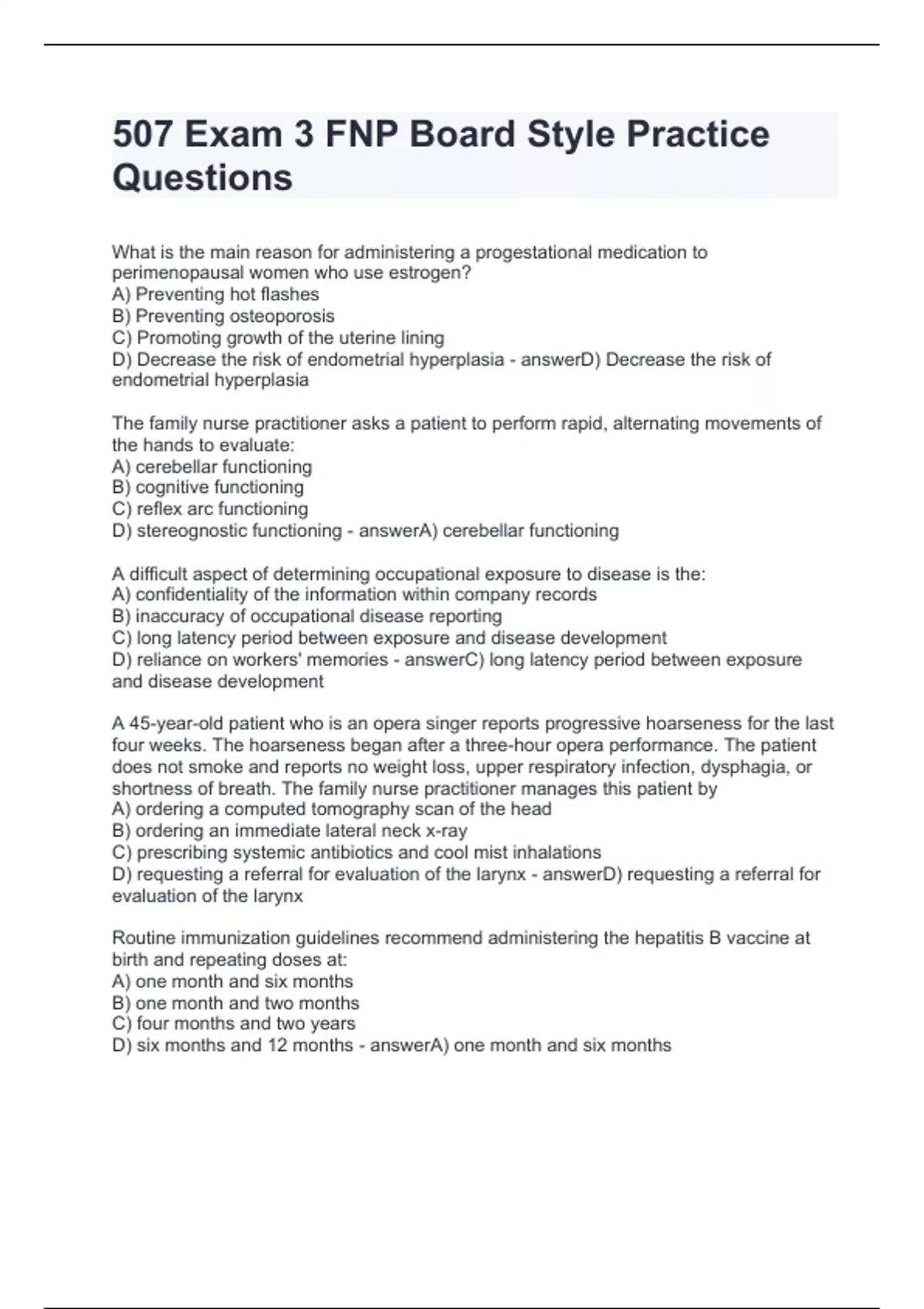 507 Exam 3 FNP Board Style Practice Questions.Interview with questions and answers