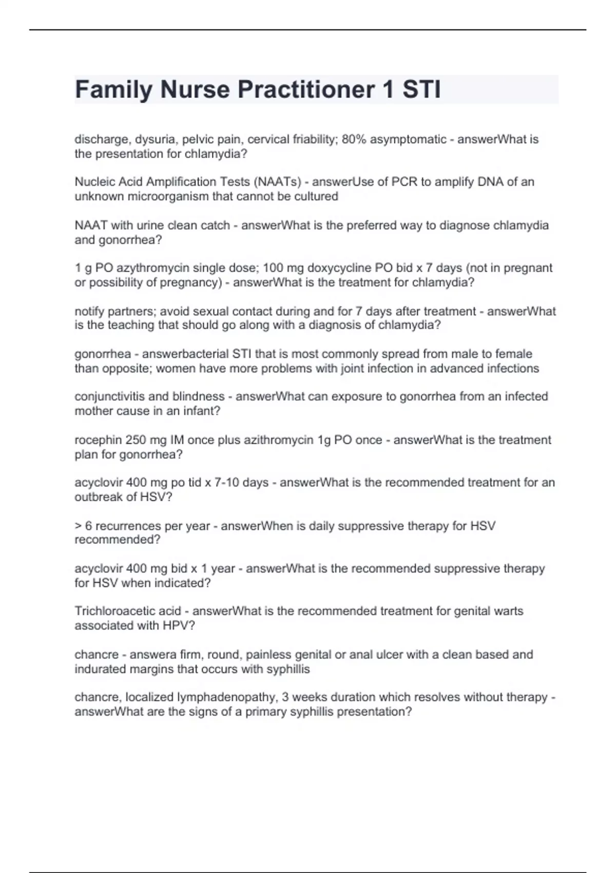 Family Nurse Practitioner 1 STI.Assessment with answers all accurate