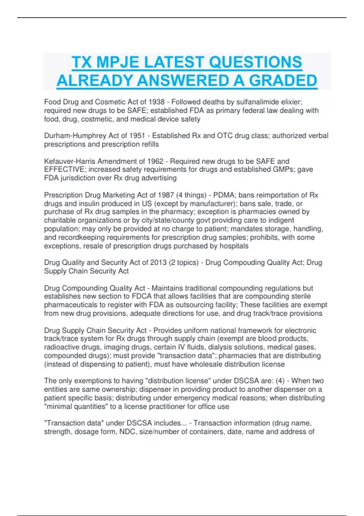 TEXAS MPJE LATEST QUESTIONS ALREADY ANSWERED A GRADED