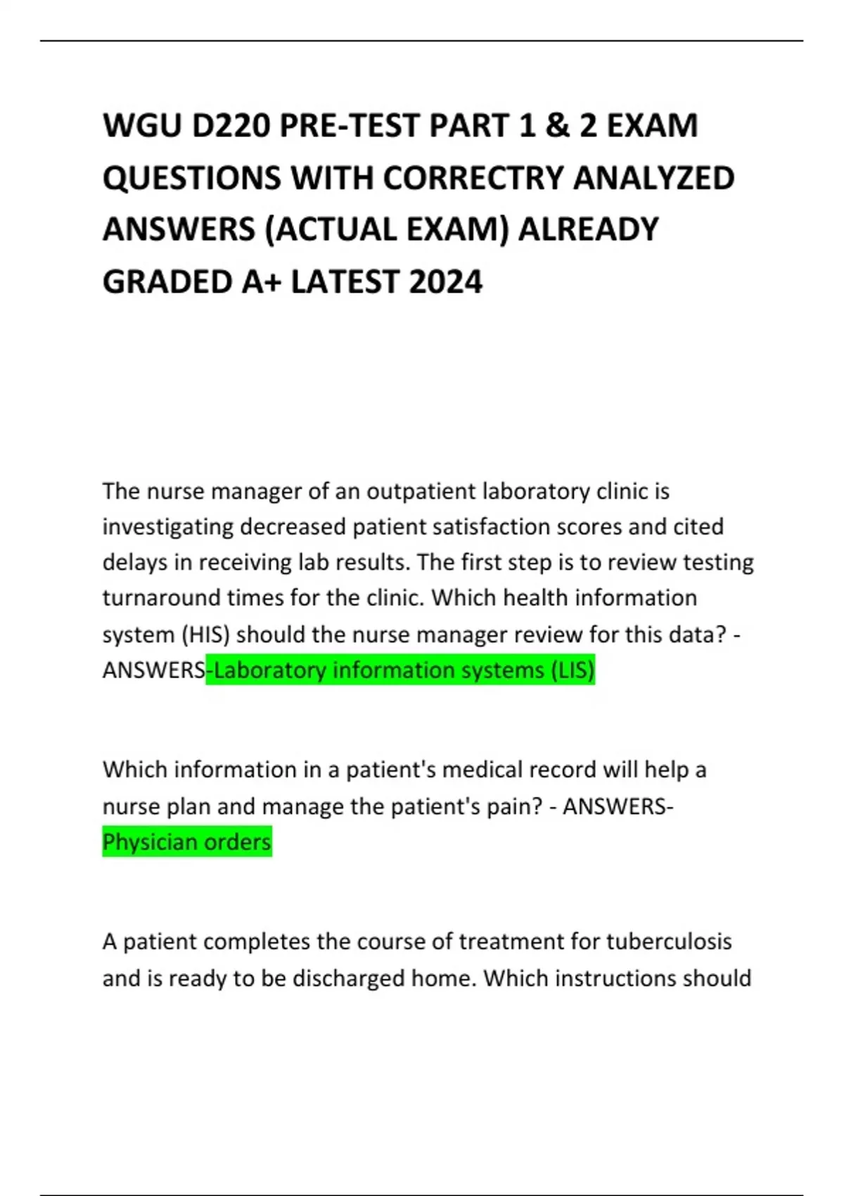 WGU D220 PRE-TEST PART 1 & 2 EXAM QUESTIONS WITH CORRECTRY ANALYZED ANSWERS (ACTUAL EXAM) ALREADY GRADED A+ LATEST 2024