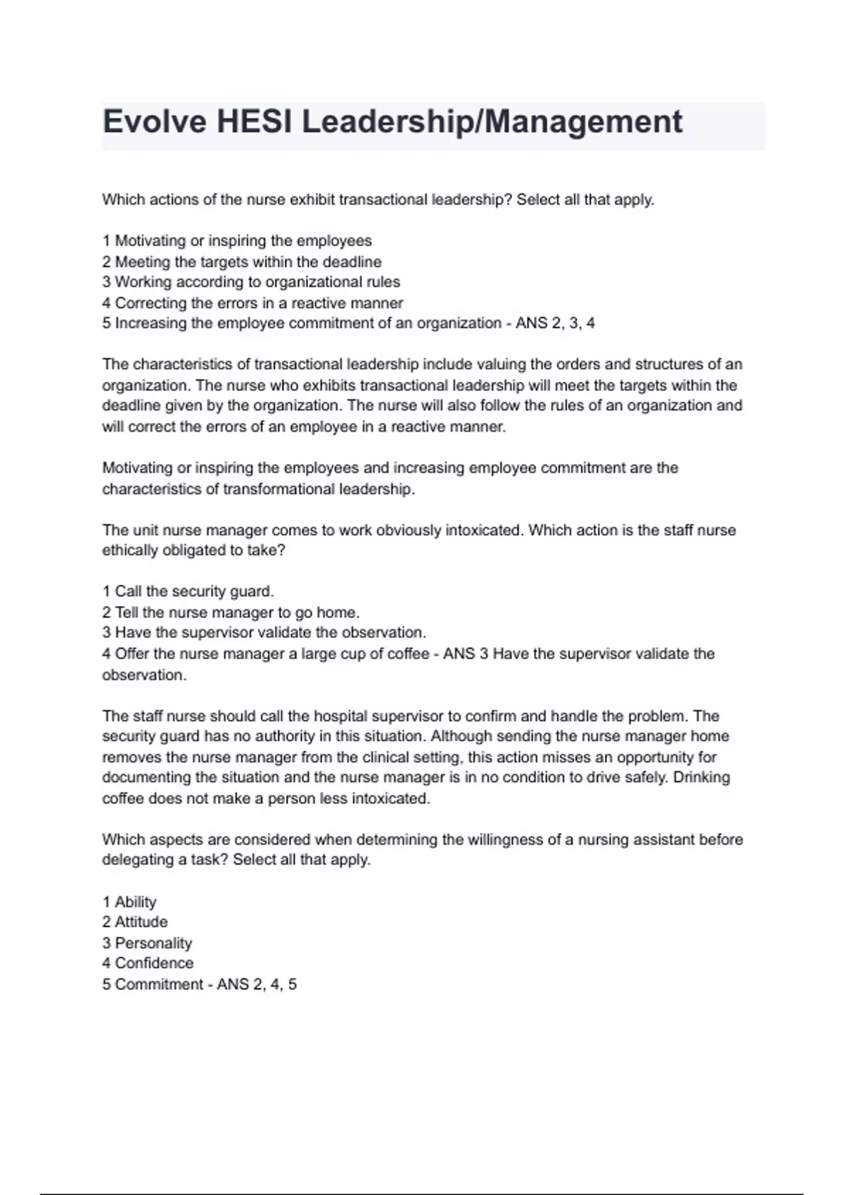 Evolve HESI Leadership/Management Exam 2024/2025 Questions With Completed & Verified Solutions.