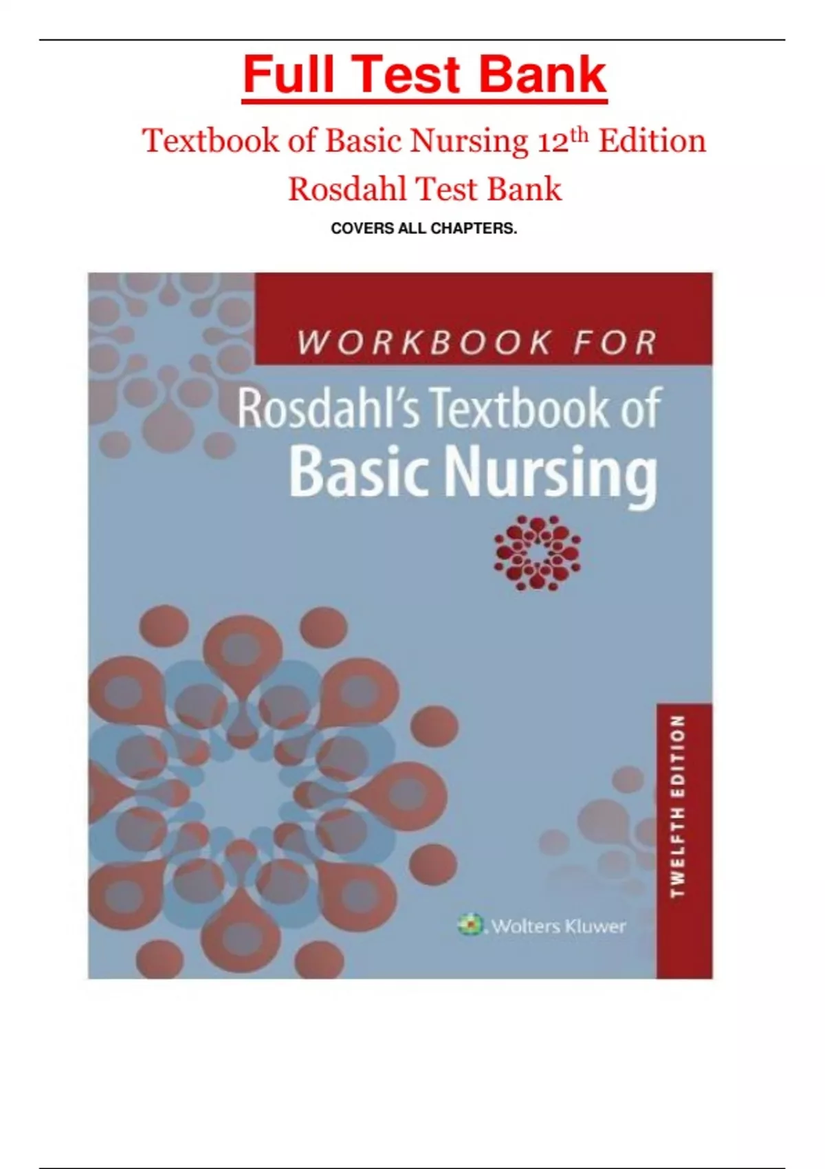 ,Textbook of Basic Nursing 12th Edition Rosdahl Test Bank