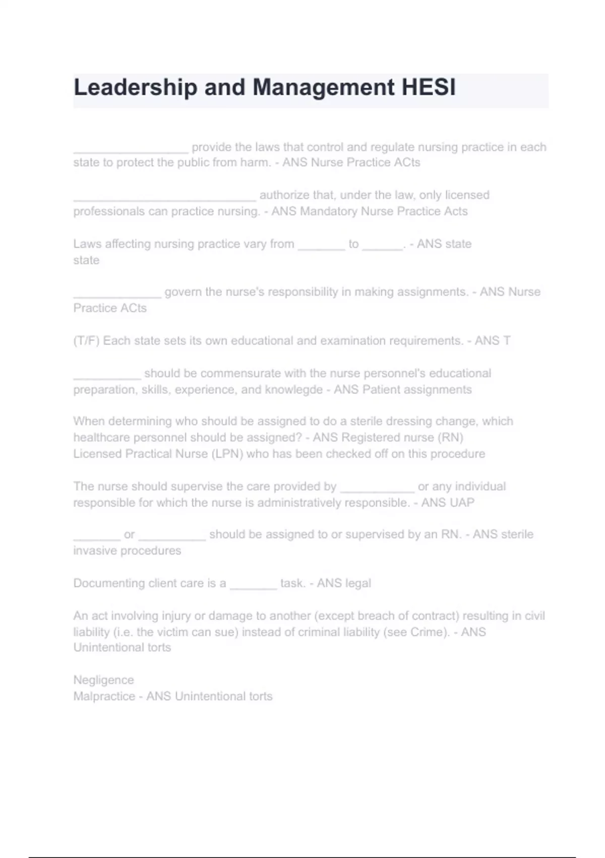 Leadership and Management HESI Exam 2024/2025 Questions With Completed & Verified Solutions.