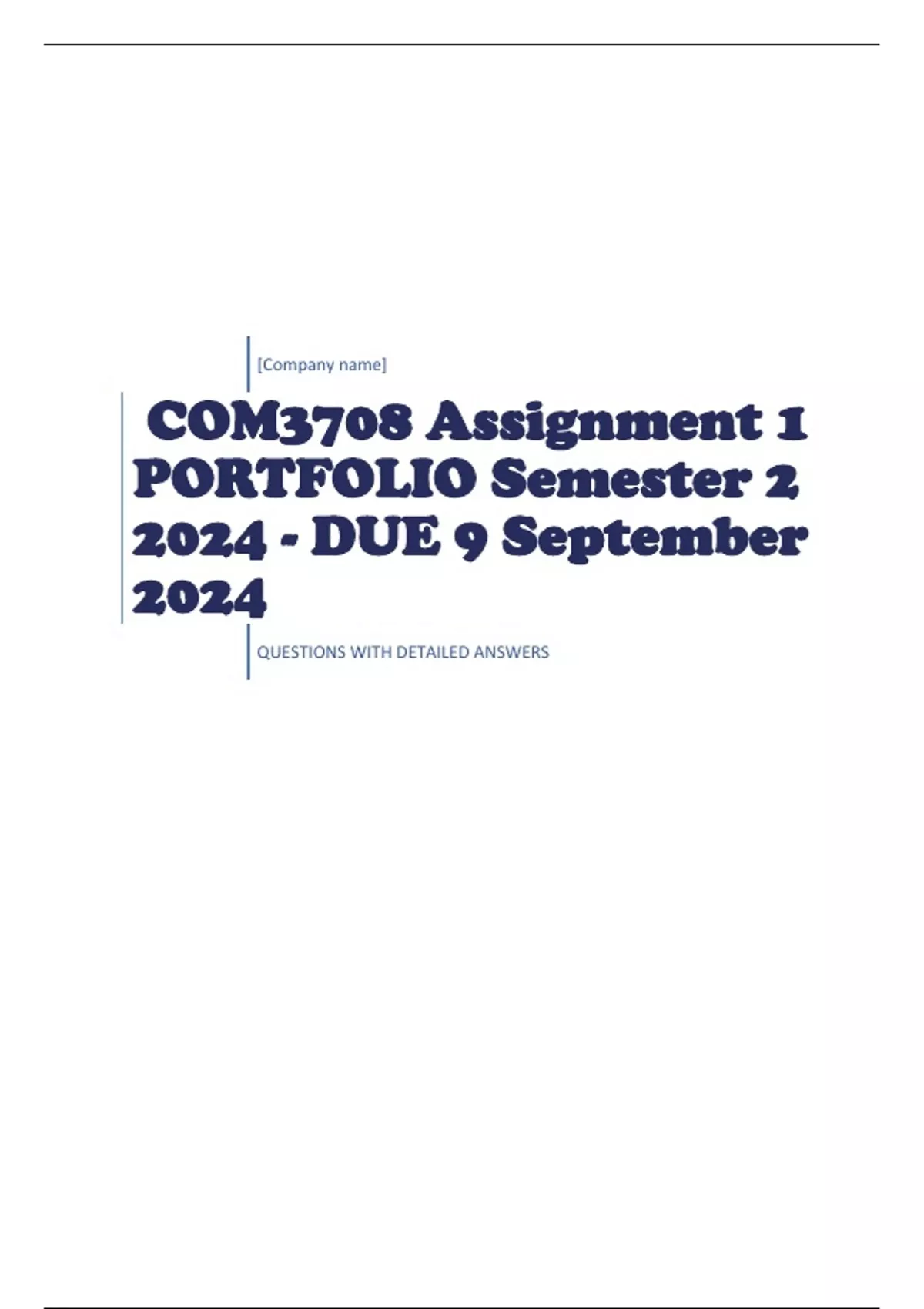 COM3708 Assignment 1 PORTFOLIO Semester 2 2024 - DUE 9 September 2024 QUESTIONS WITH COMPLETE ANSWERS