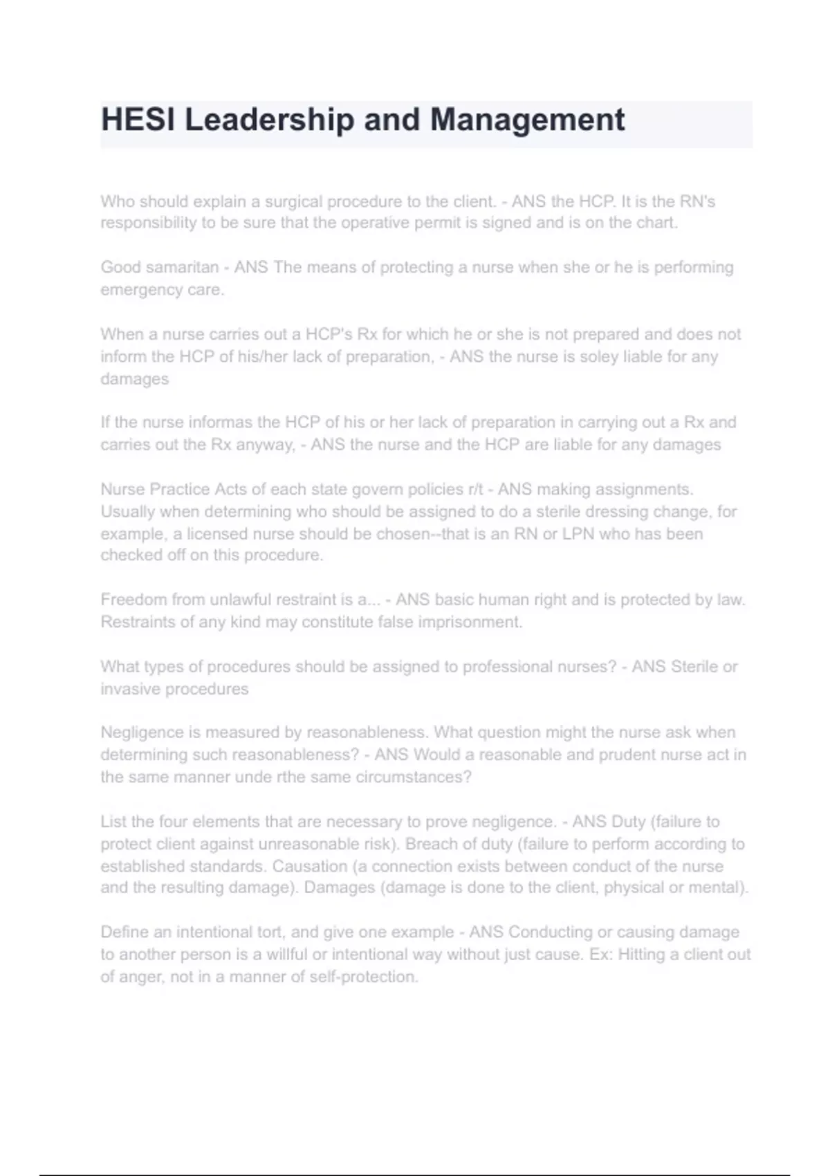 HESI Leadership and Management Exam 2024/2025 Questions With Completed & Verified Solutions.