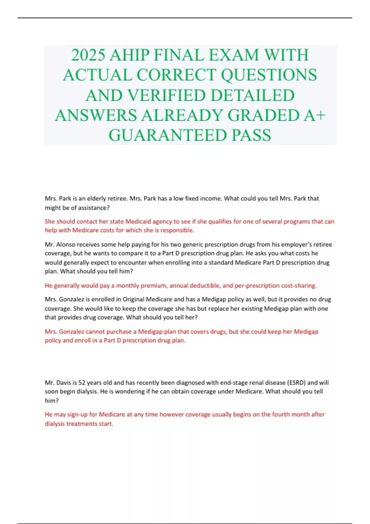 2025 AHIP FINAL EXAM WITH ACTUAL CORRECT QUESTIONS AND VERIFIED DETAILED ANSWERS ALREADY GRADED A+ GUARANTEED PASS