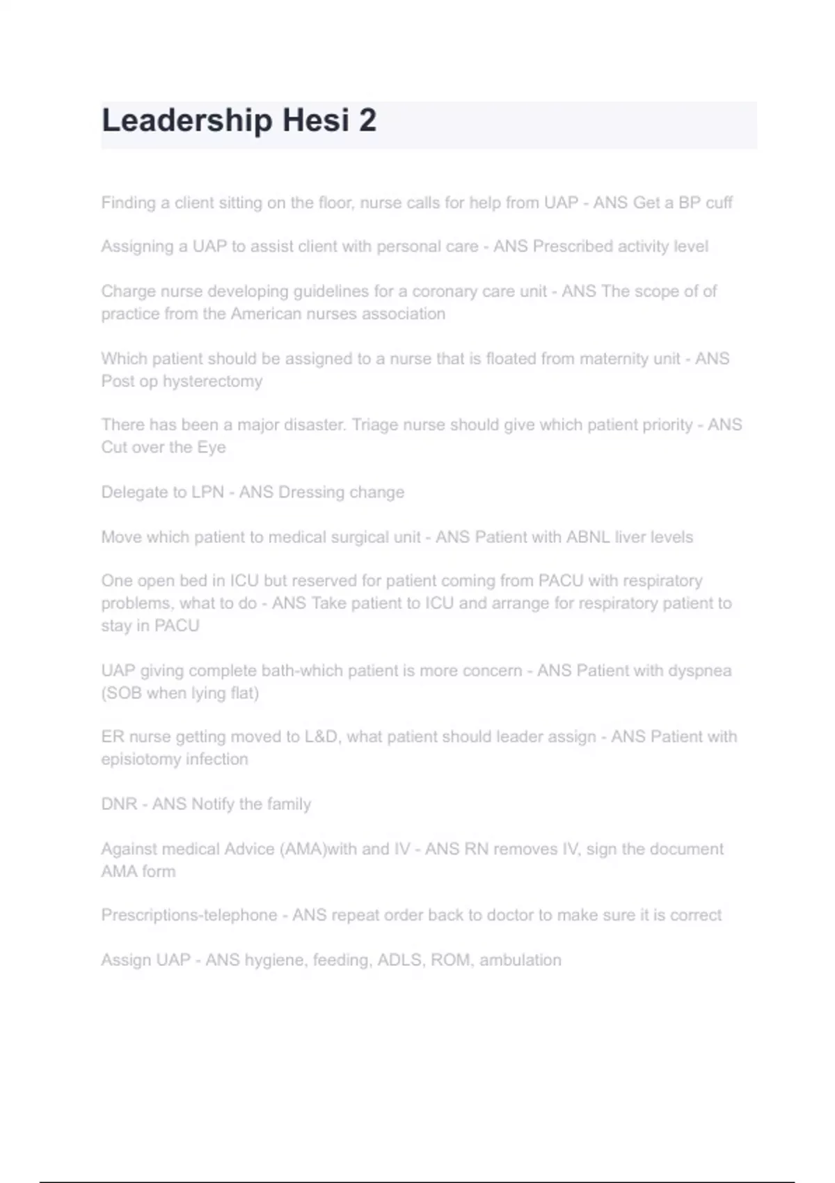 Leadership Hesi 2 Exam 2024/2025 Questions With Completed & Verified Solutions.