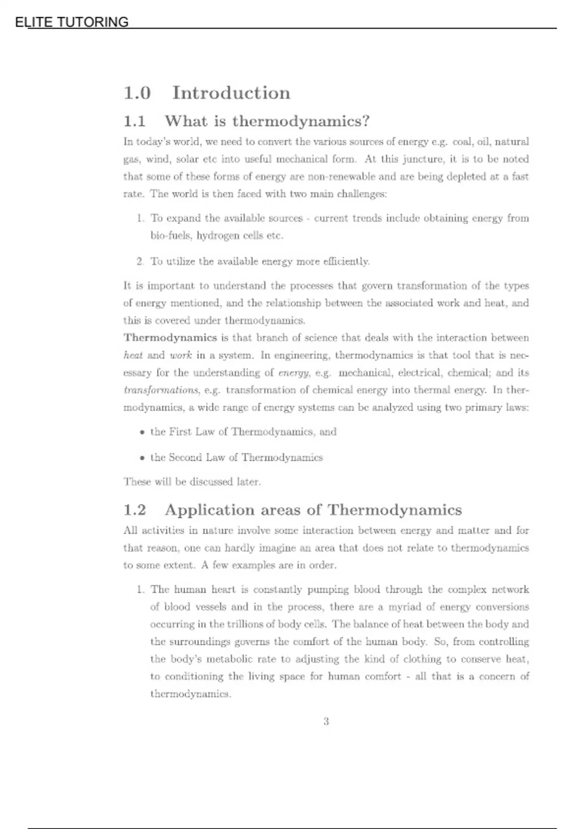 The document introduces thermodynamics, focusing on its core principles and significance in science and engineering. It covers basic concepts such as systems, surroundings, states, and processes, along with key terms like energy, work, and heat. The notes outline the four fundamental laws of thermodynamics, providing a foundation for understanding energy transformations and conservation. Practical applications in various fields, from engines to environmental science, demonstrate thermodynamics' broad relevance.
