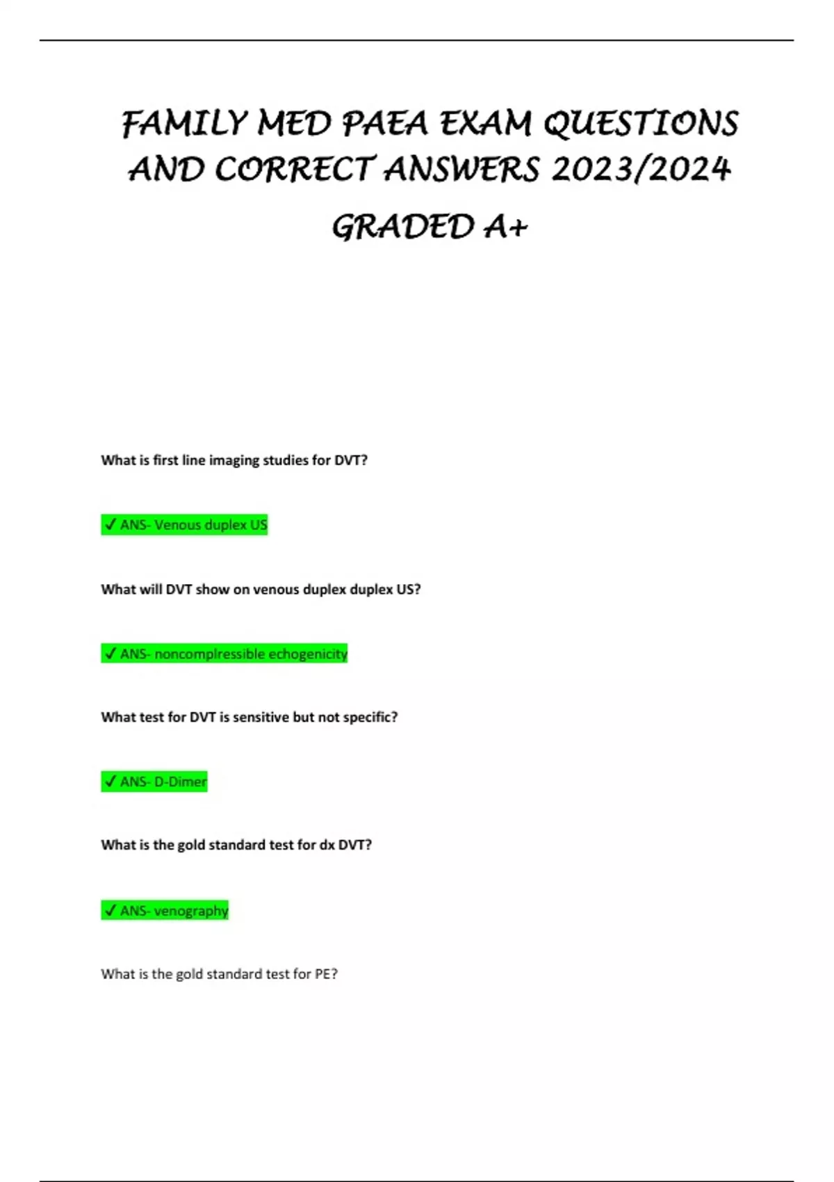 FAMILY MED PAEA EXAM QUESTIONS AND CORRECT ANSWERS 2023/2024 GRADED A+