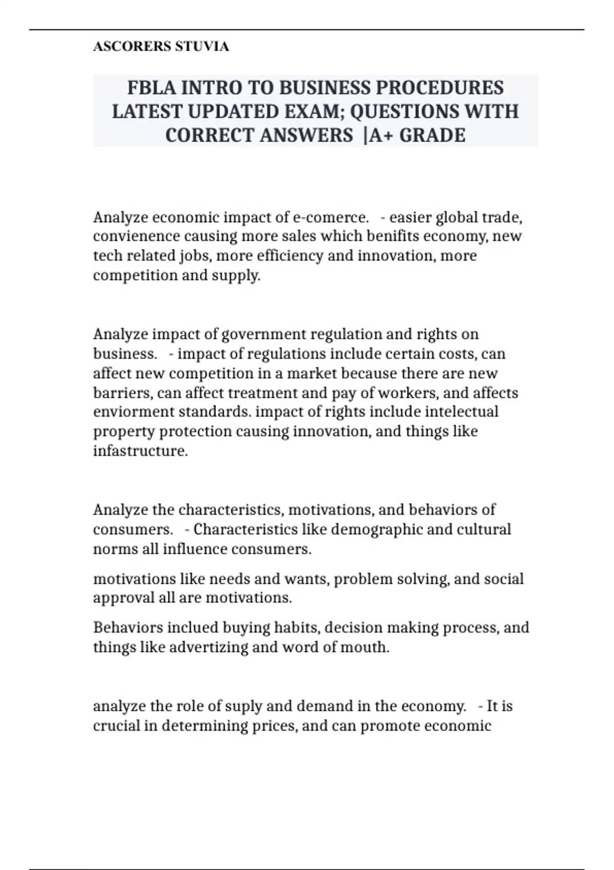 fbla intro to business procedures latest updated e