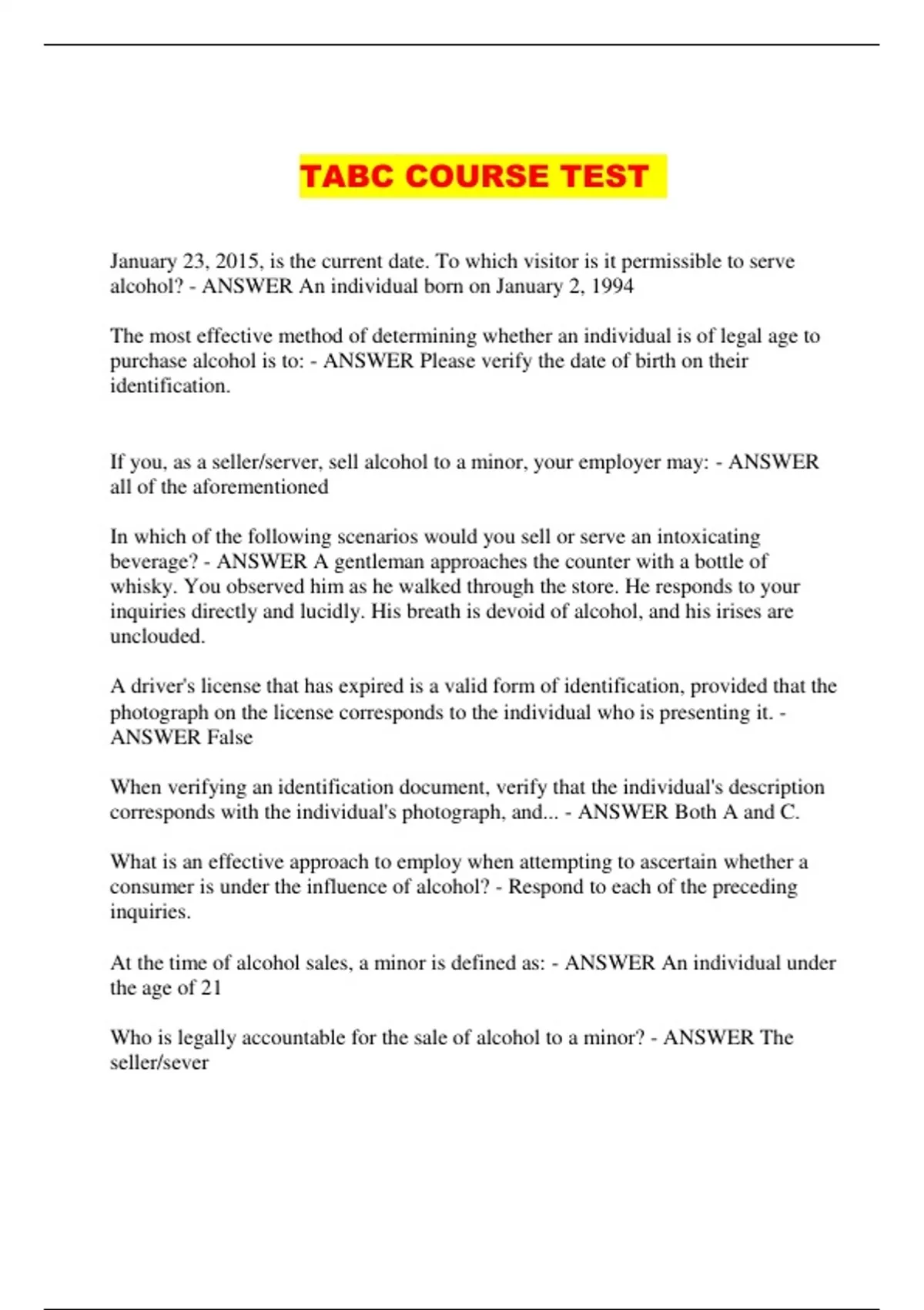 TABC COURSE TEST ...