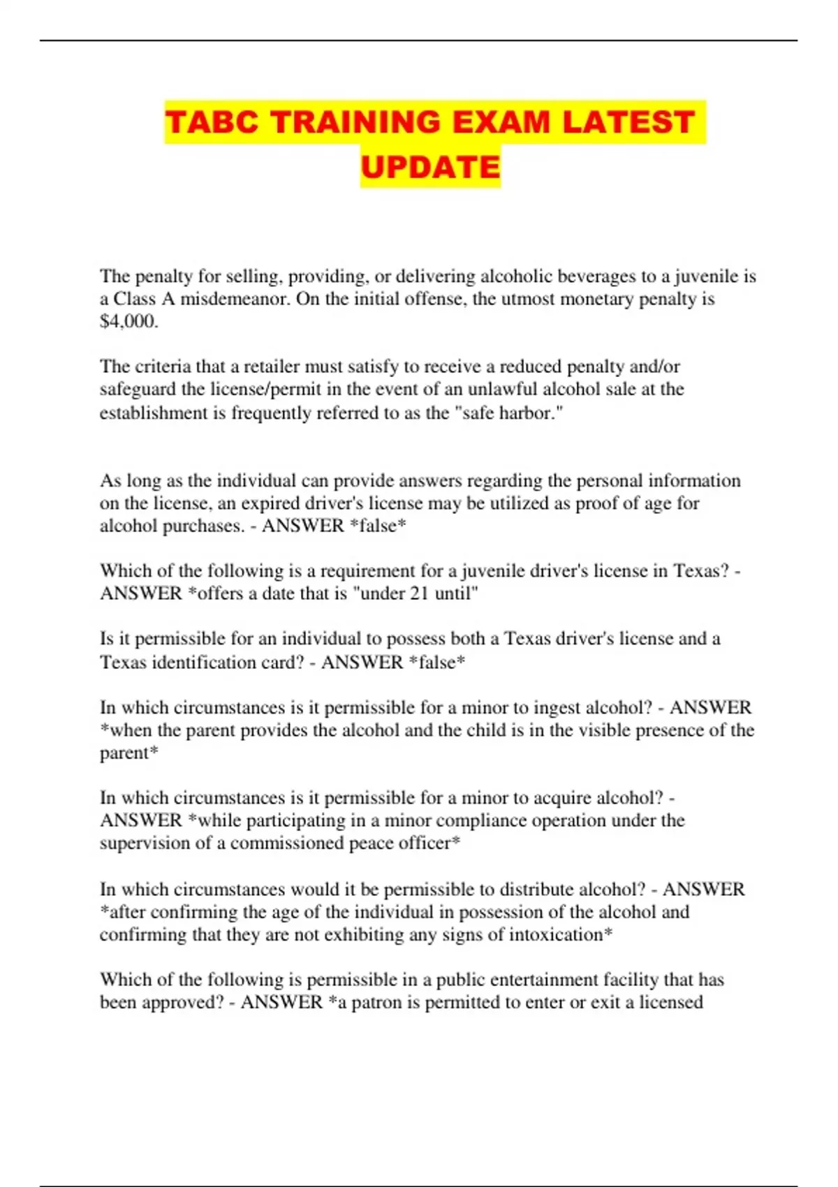 ALL TABC BUNDLED EXAMS WITH QUESTIONS AND VERIFIED ANSWERS