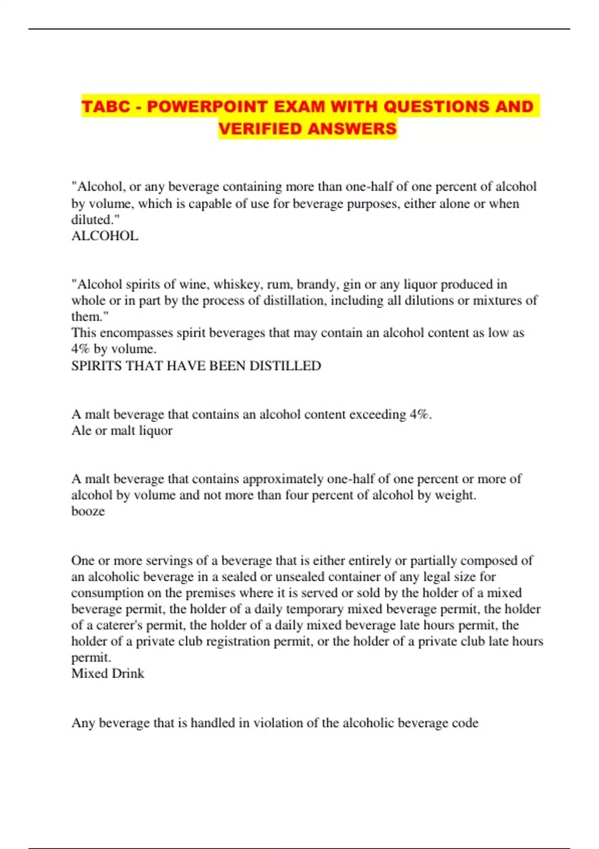 TABC - POWERPOINT EXAM WITH QUESTIONS AND VERIFIED ANSWERS...