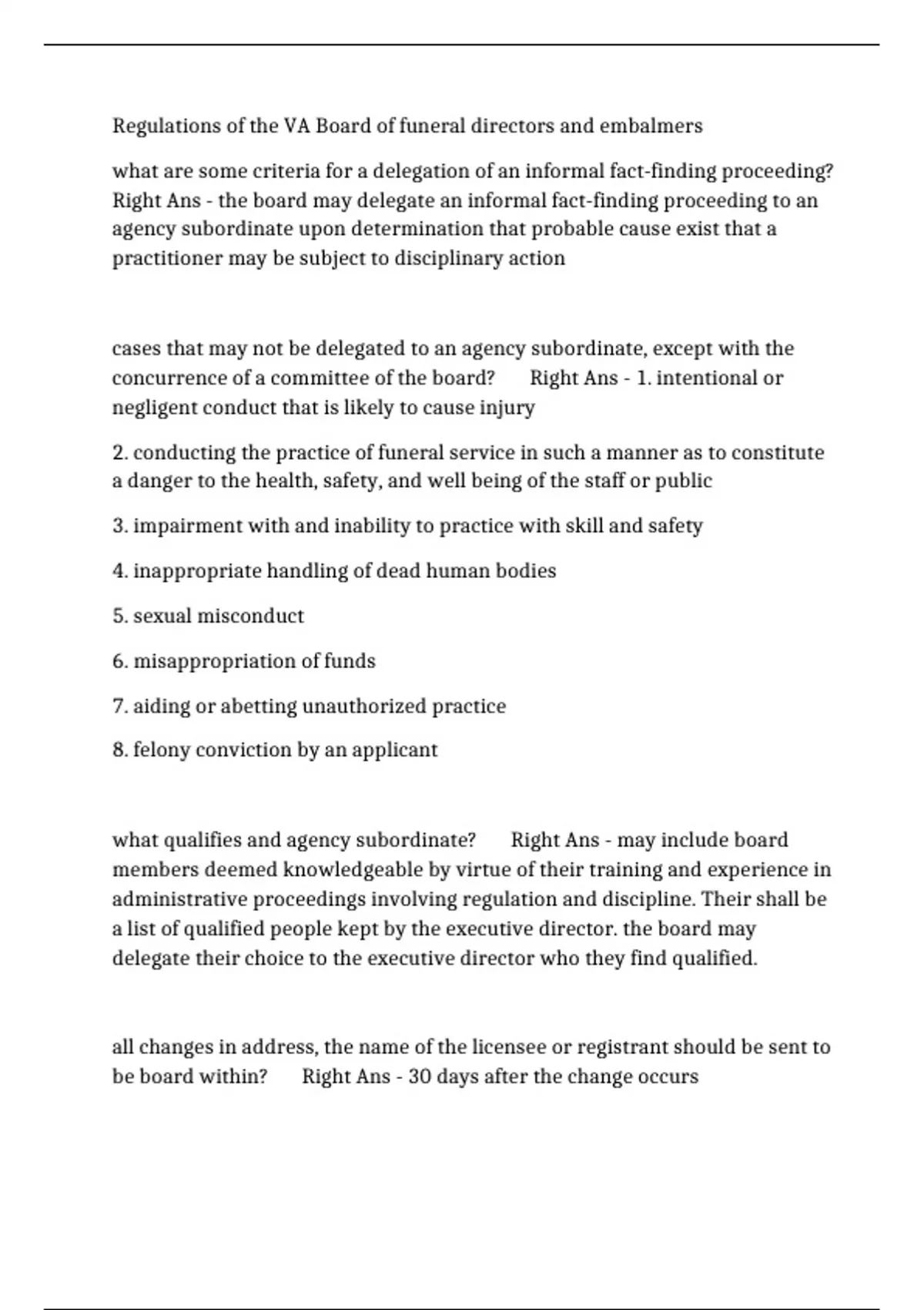 Regulations Of The VA Board Of Funeral Directors And Embalmers: Questions With Detailed Solutions