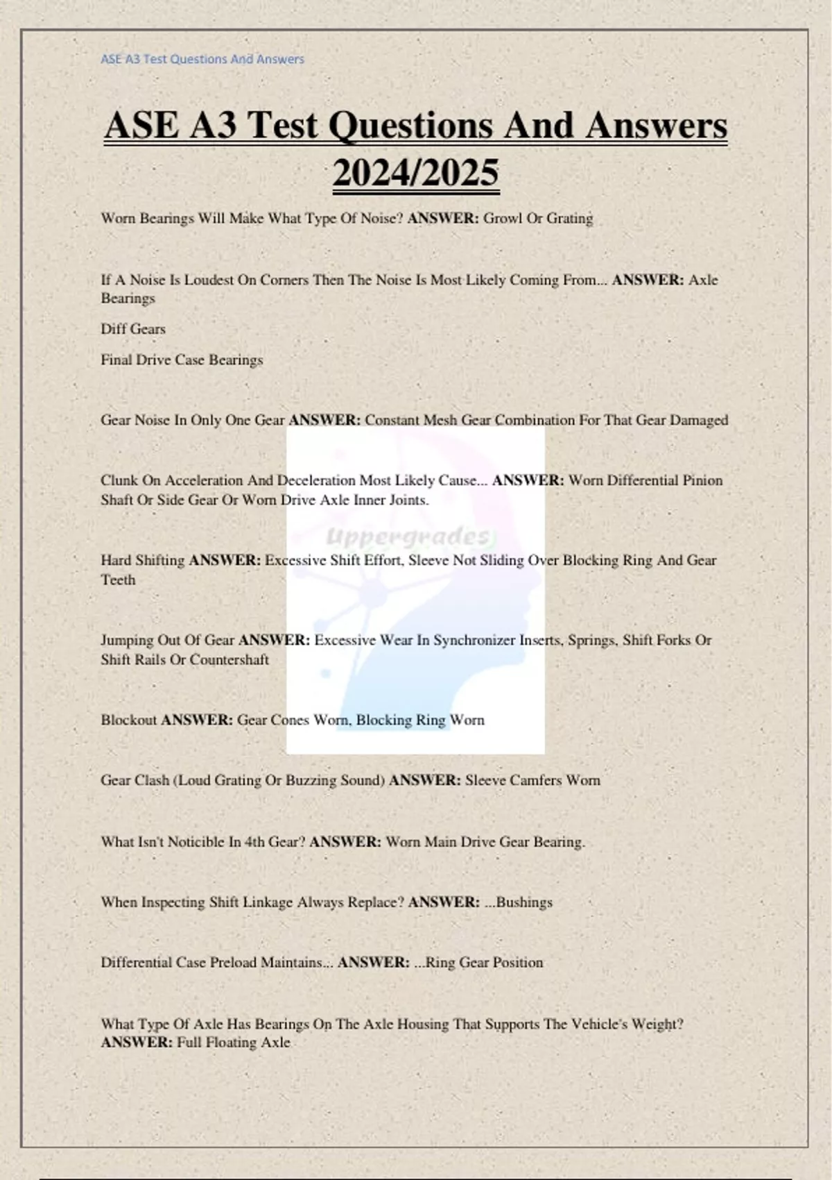 ASE A3 Test Questions And Answers 2024/2025