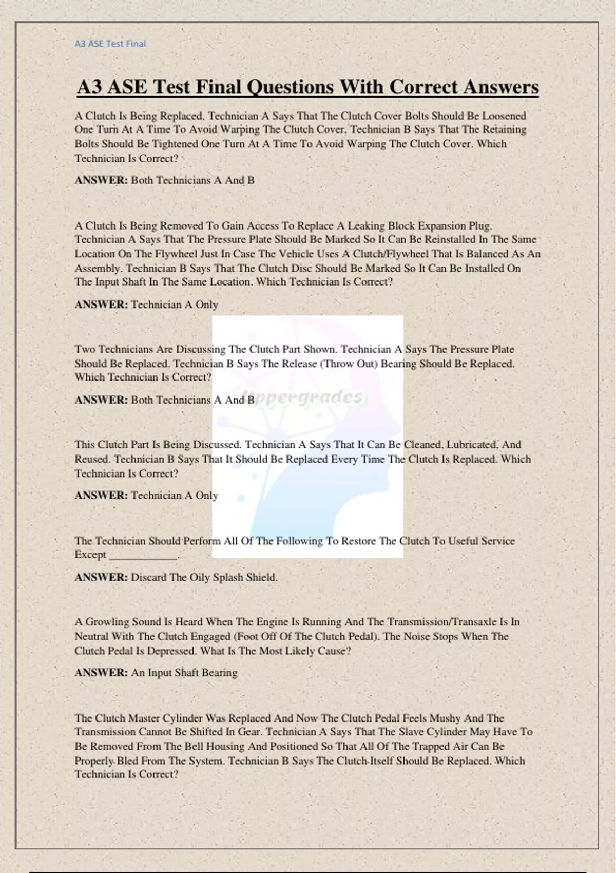 A3 ASE Test Final Questions With Correct Answers,A3 ASE Test Final Questions With Correct Answers,A3 ASE Test Final Questions With Correct Answers,A3 ASE Test Final Questions With Correct Answers,A3 ASE Test Final Questions With Correct Answers