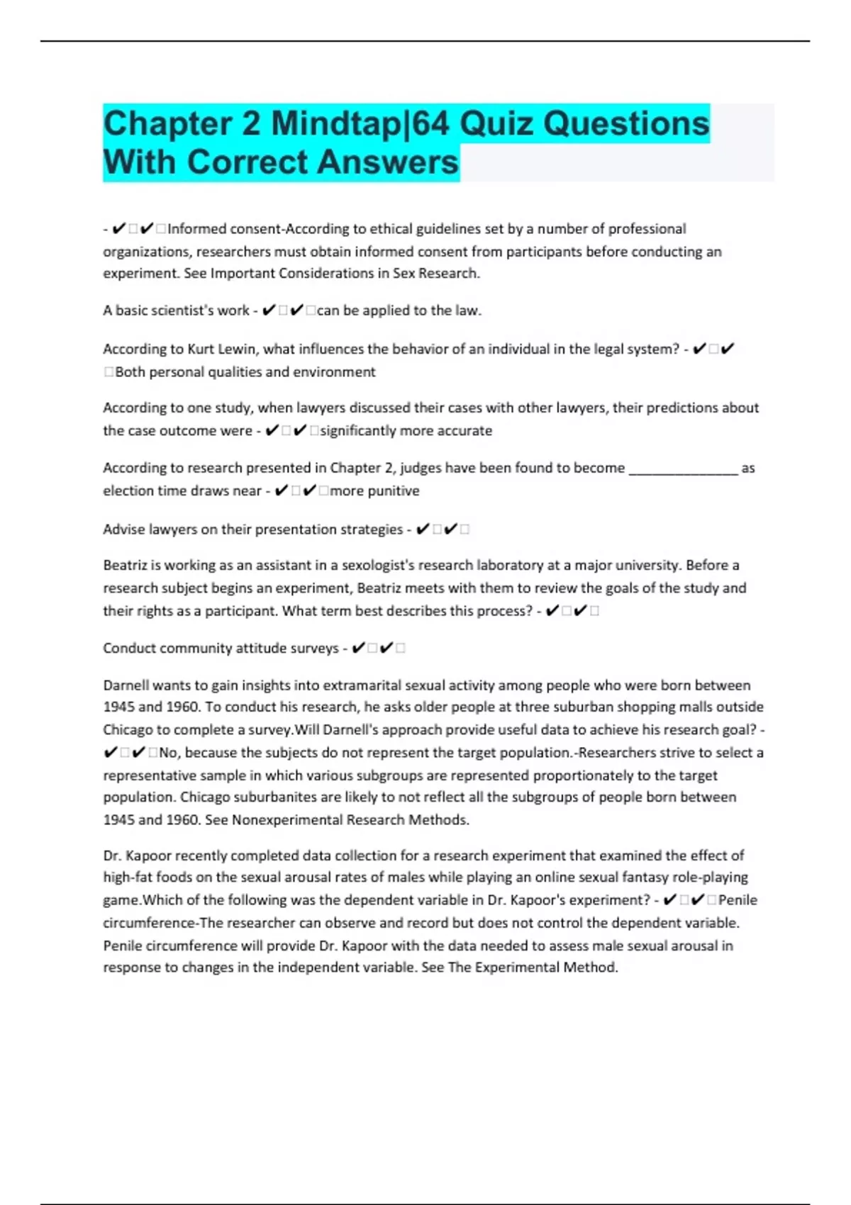 Chapter 2 Mindtap|64 Quiz Questions With Correct Answers|2024