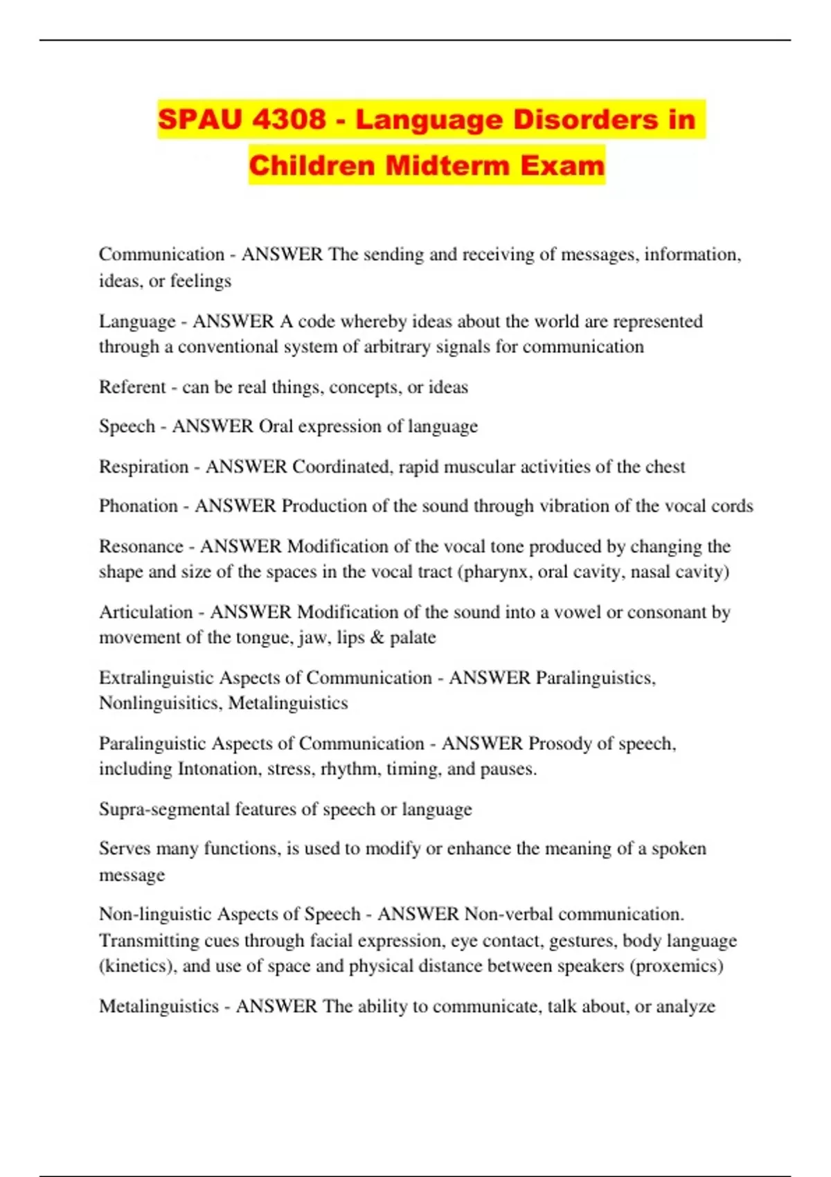 SPAU 4308 - Language Disorders in Children Midterm Exam...