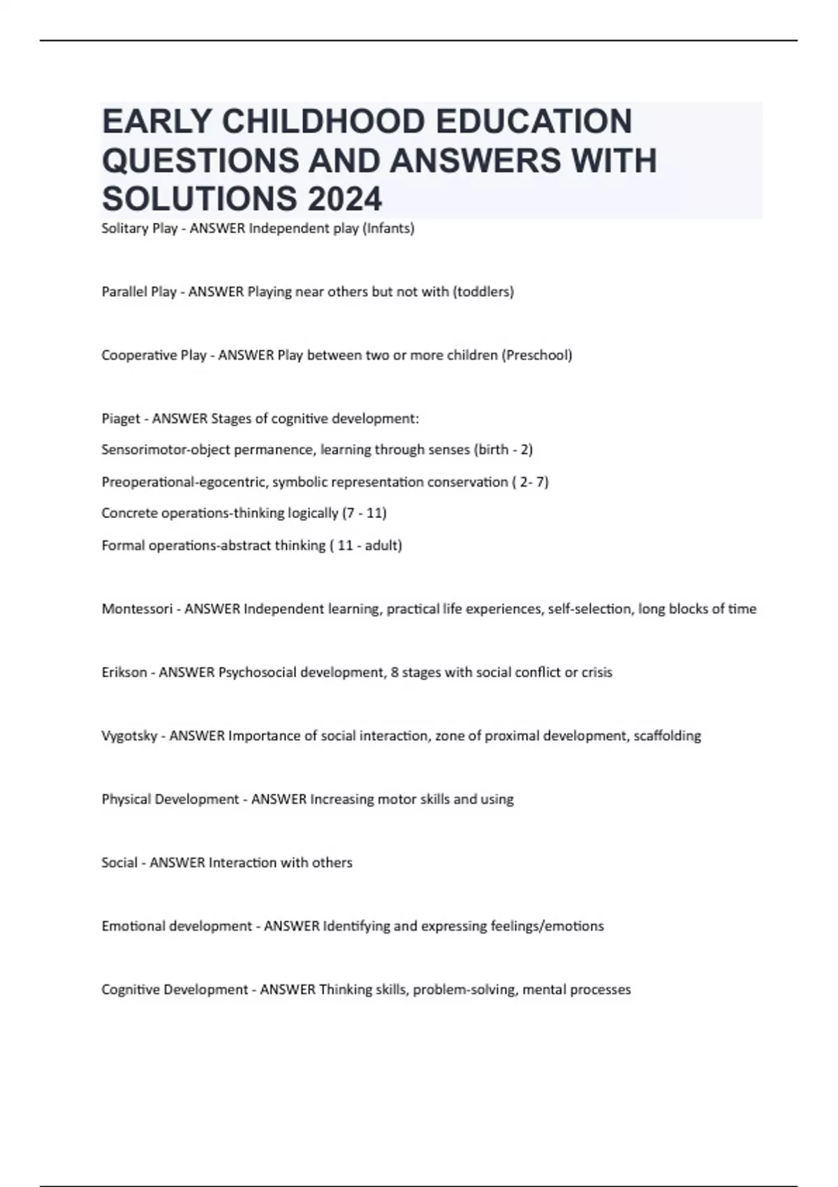 EARLY CHILDHOOD EDUCATION QUESTIONS AND ANSWERS WITH SOLUTIONS 2024