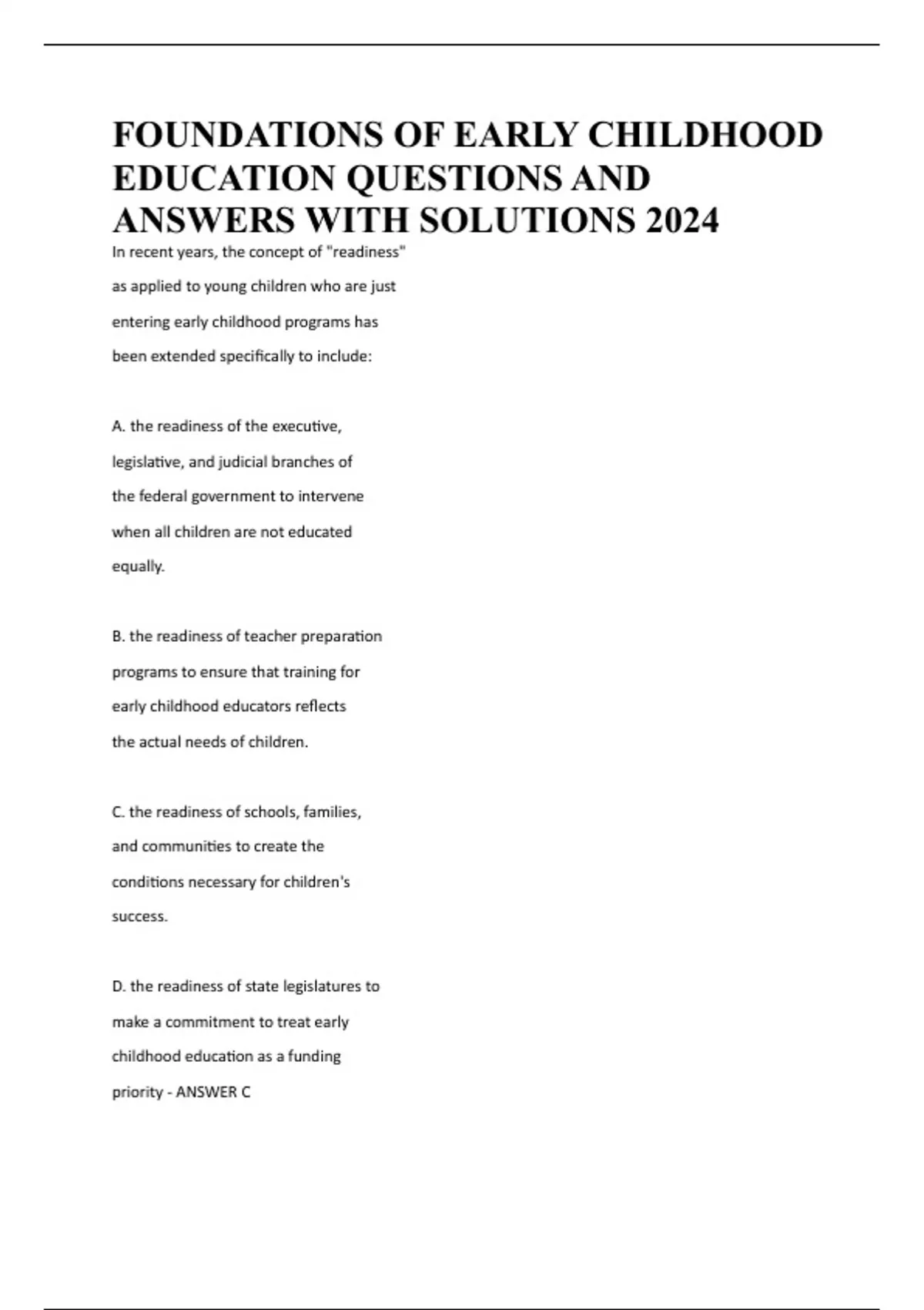 FOUNDATIONS OF EARLY CHILDHOOD EDUCATION QUESTIONS AND ANSWERS WITH SOLUTIONS 2024