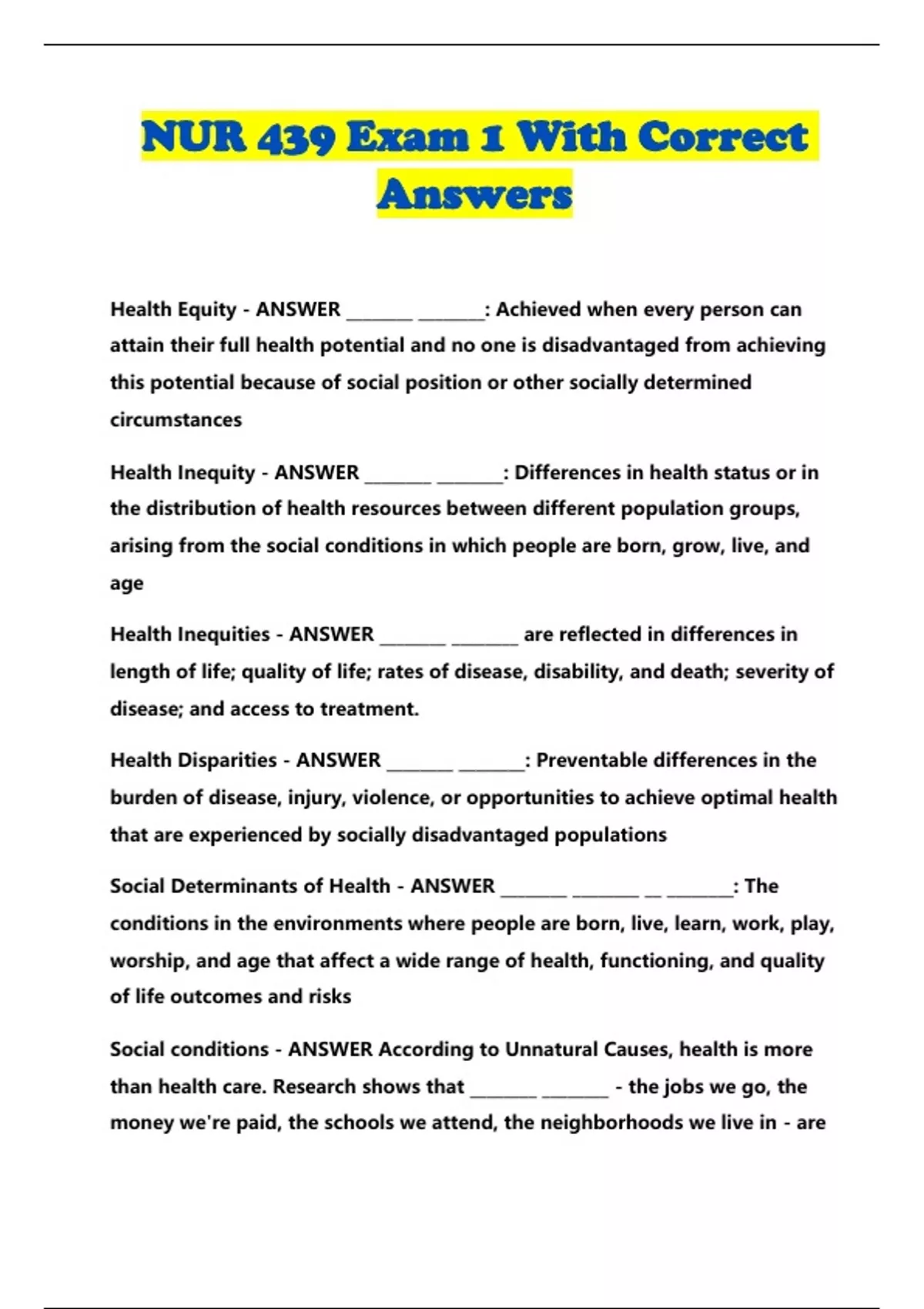 NUR 439 BUNDLED EXAMS WITH SOLUTION