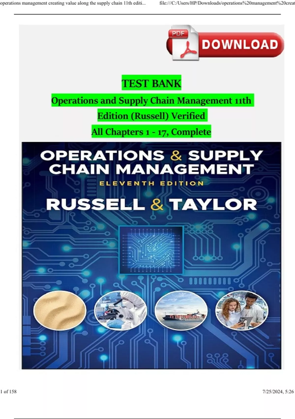 TEST BANK For Operations and Supply Chain Management, 11th Edition by Roberta S. Russell, Bernard W. Taylor, Verified Chapters 1 - 17, Complete Newest Version Edition 2024 ISBN:9781119905677