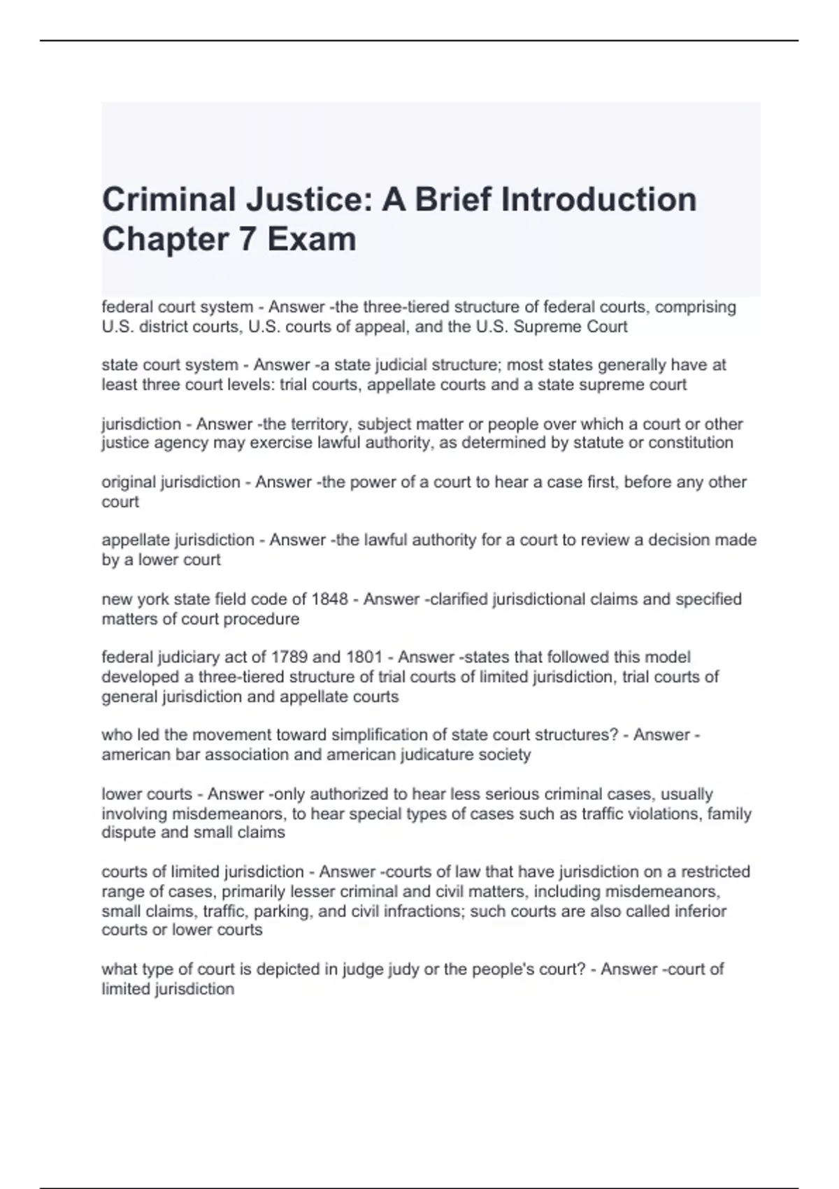 Criminal Justice A Brief Introduction Chapter 7 Exam with complete solutions