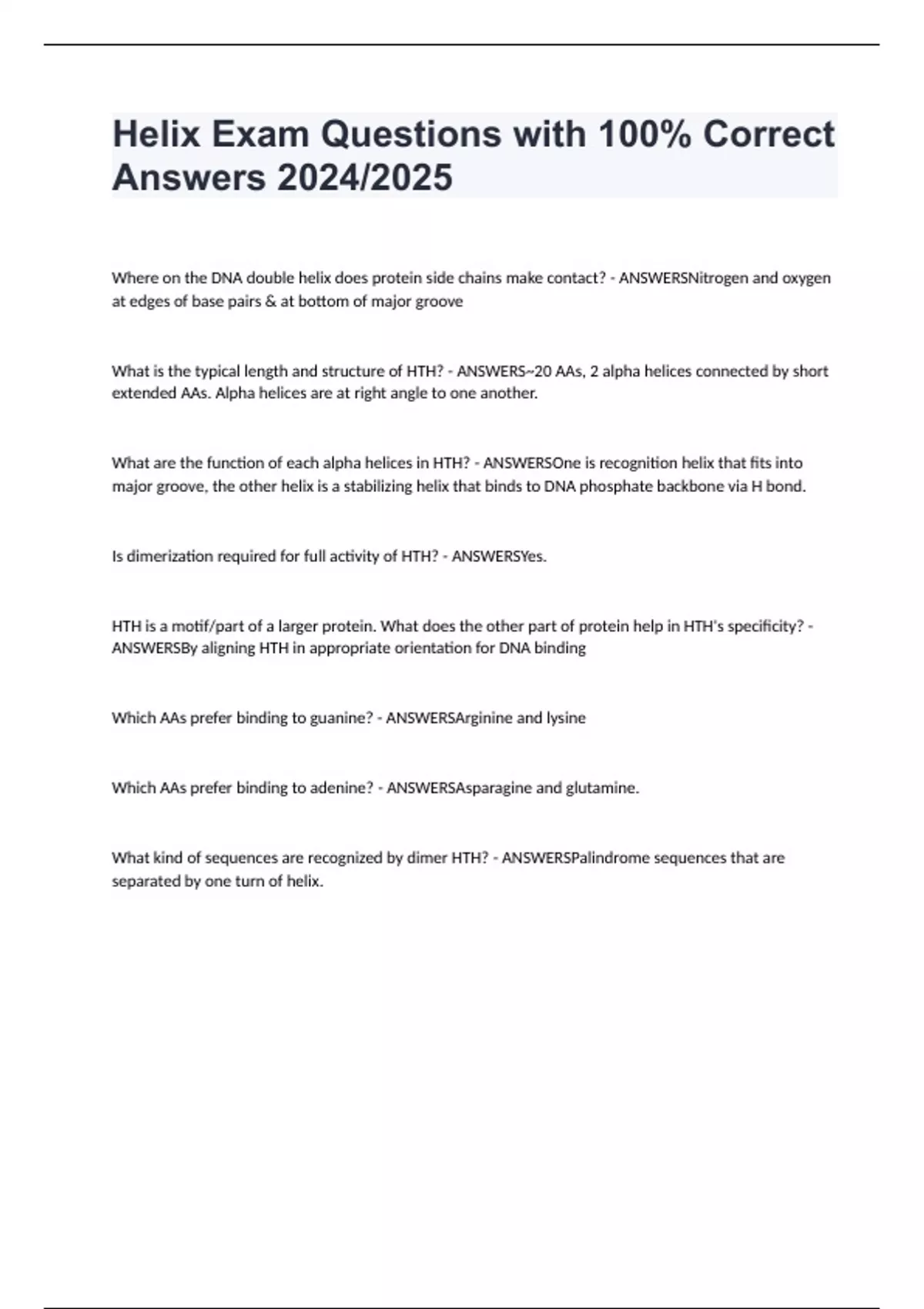 Helix Exam Questions with 100% Correct Answers 2024/2025