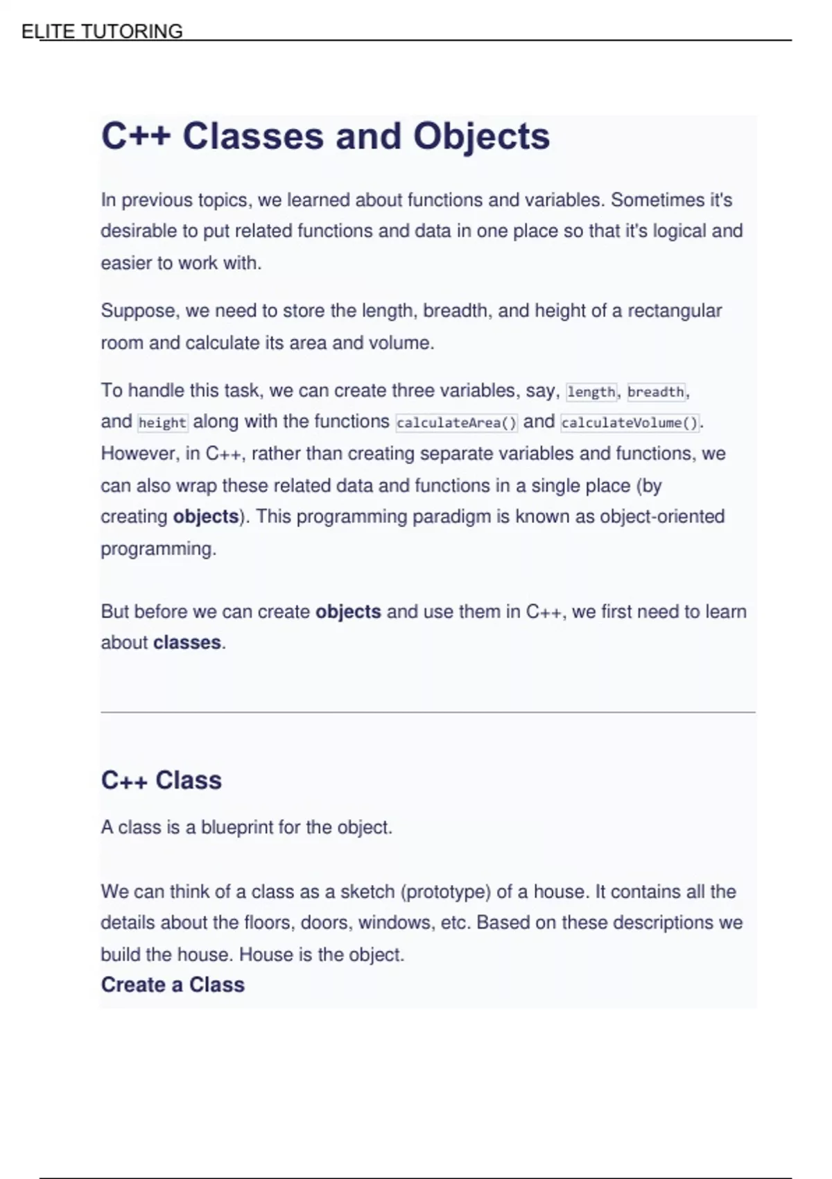 However, in C++, rather than creating separate variables and functions, we