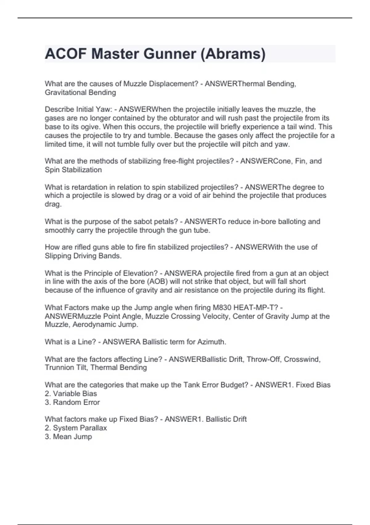 ACOF Master Gunner (Abrams).Questions with verified solutions