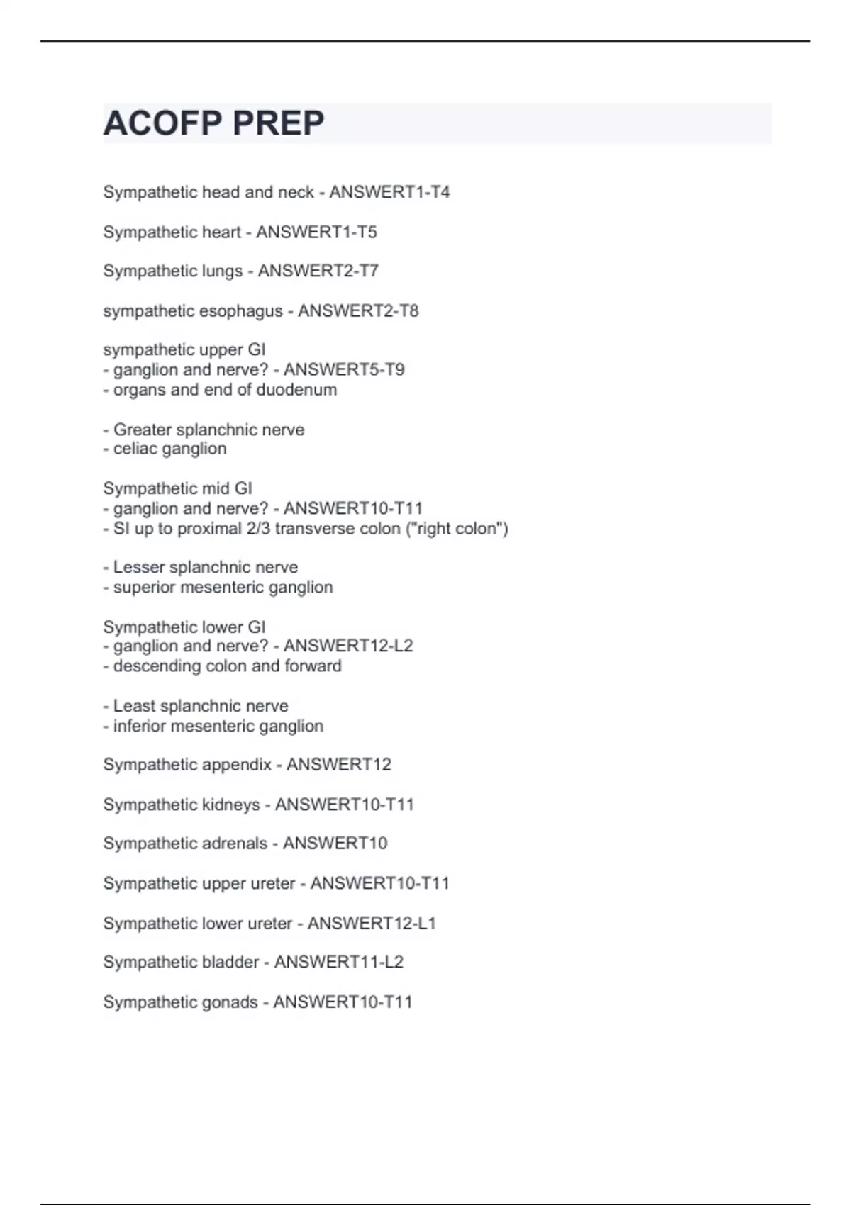 ACOFP PREP. Questions and answers solved