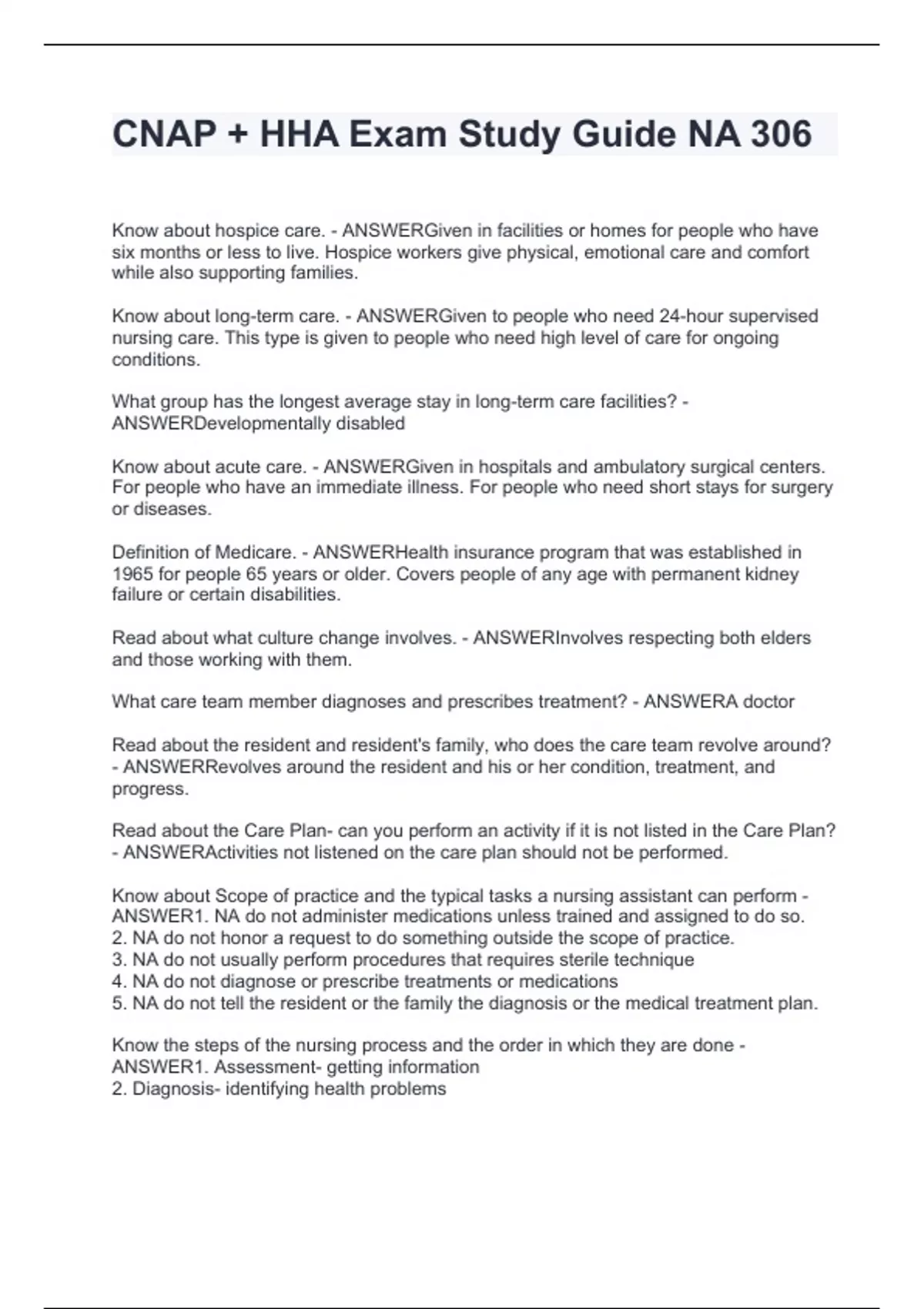 CNAP + HHA Exam Study Guide NA 306.