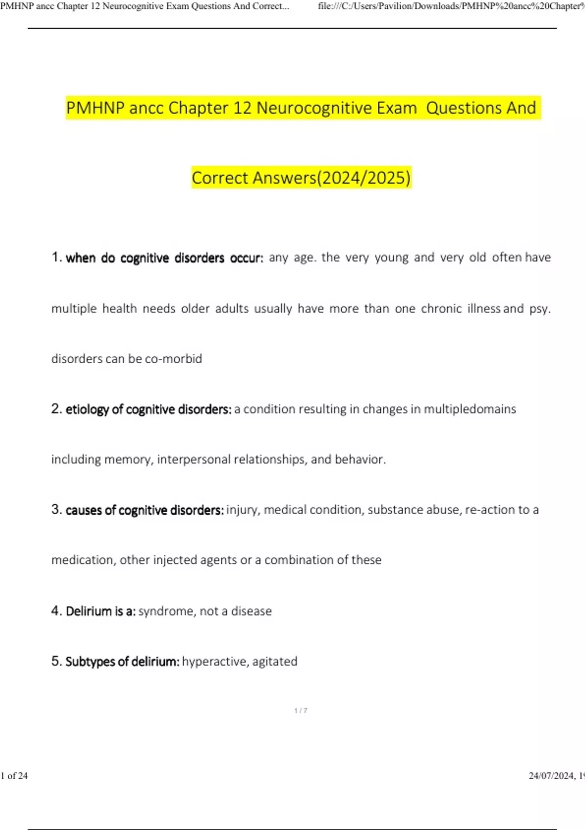 pmhnp ancc chapter 12 neurocognitive exam solved 1