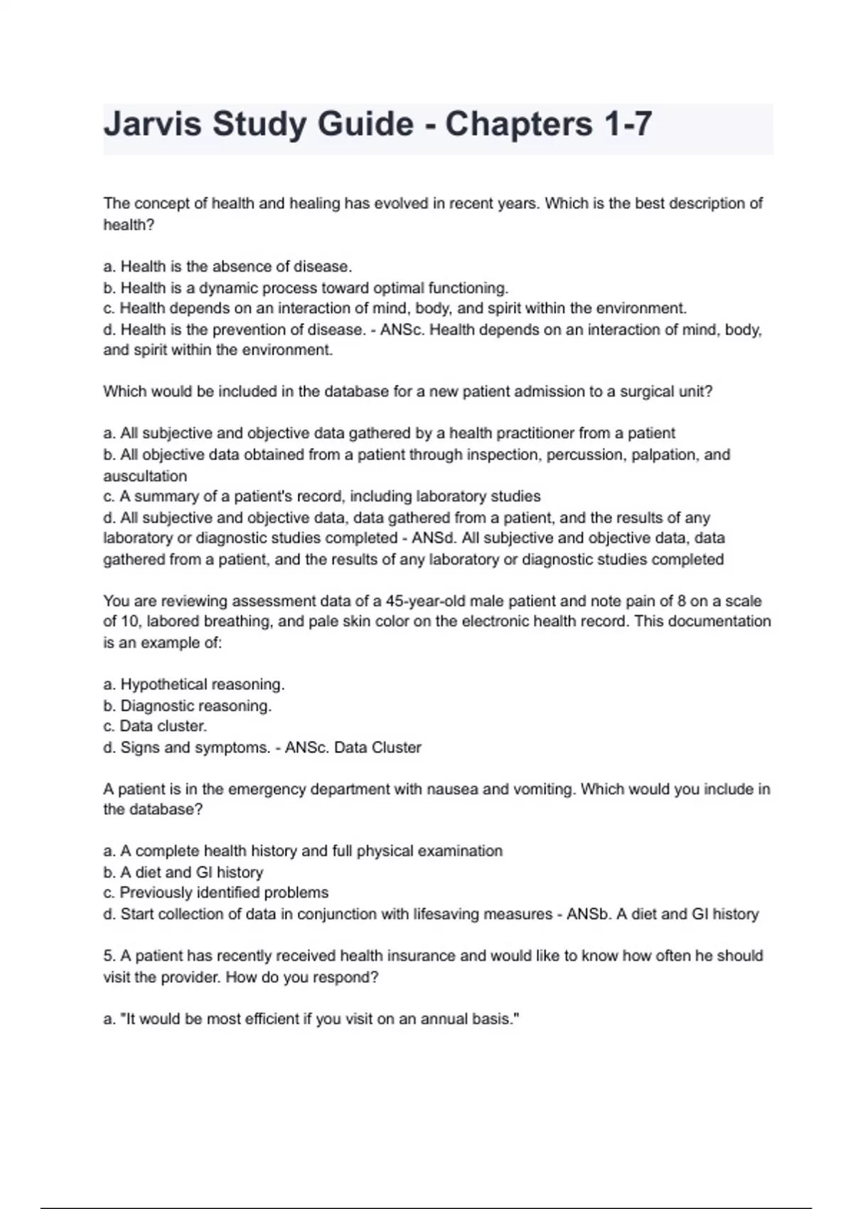 Jarvis Study Guide - Chapters 1-7 Test bank