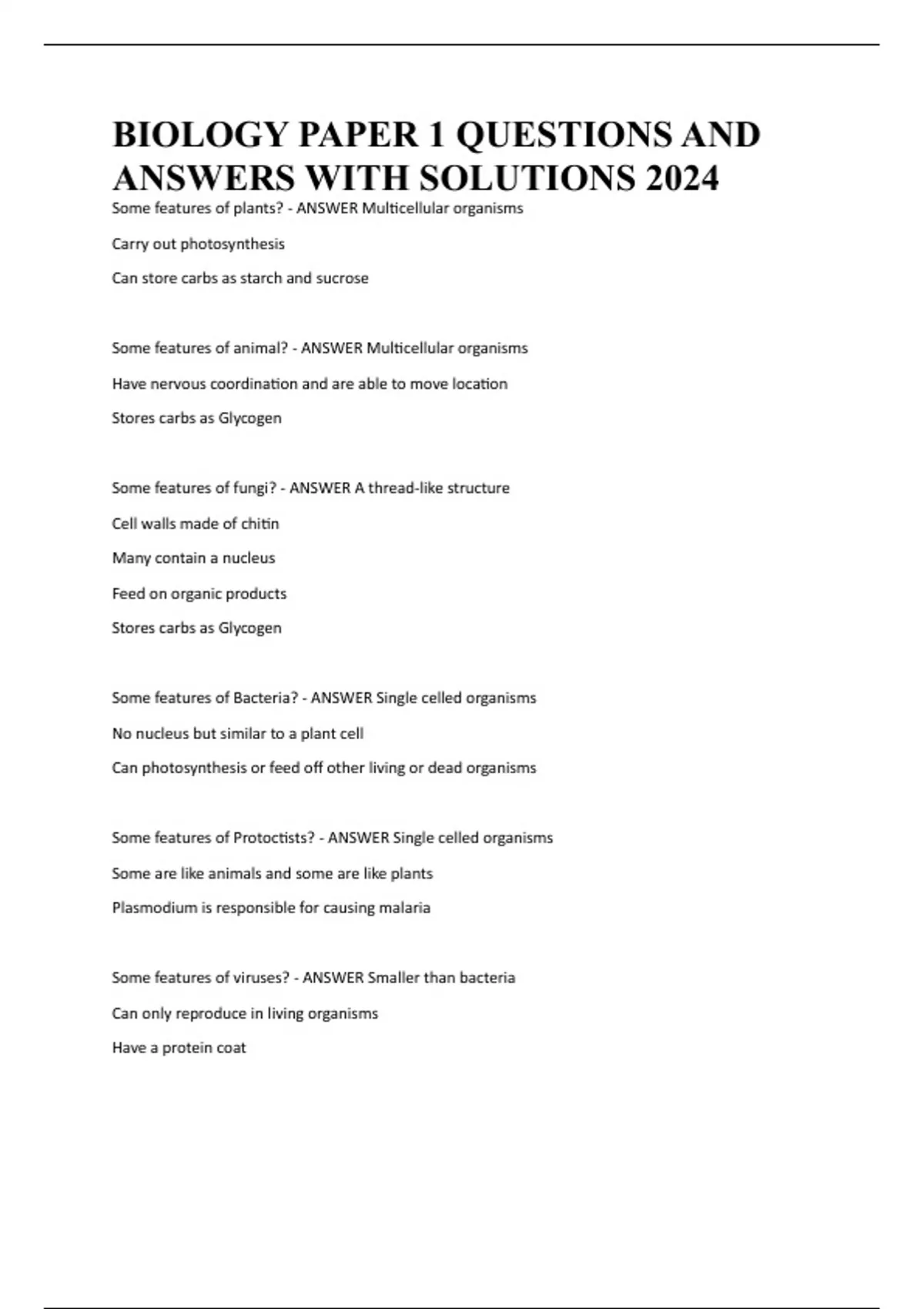 BIOLOGY PAPER 1 QUESTIONS AND ANSWERS WITH SOLUTIONS 2024