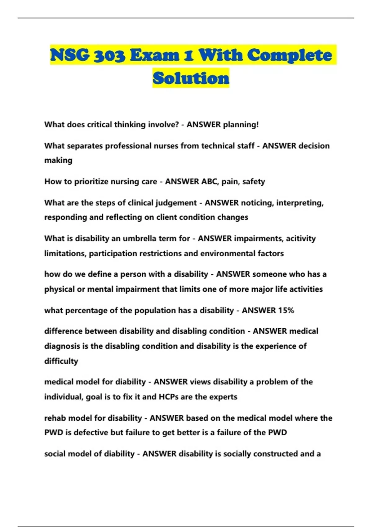 NSG 303 BUNDLED EXAMS WITH SOLUTION