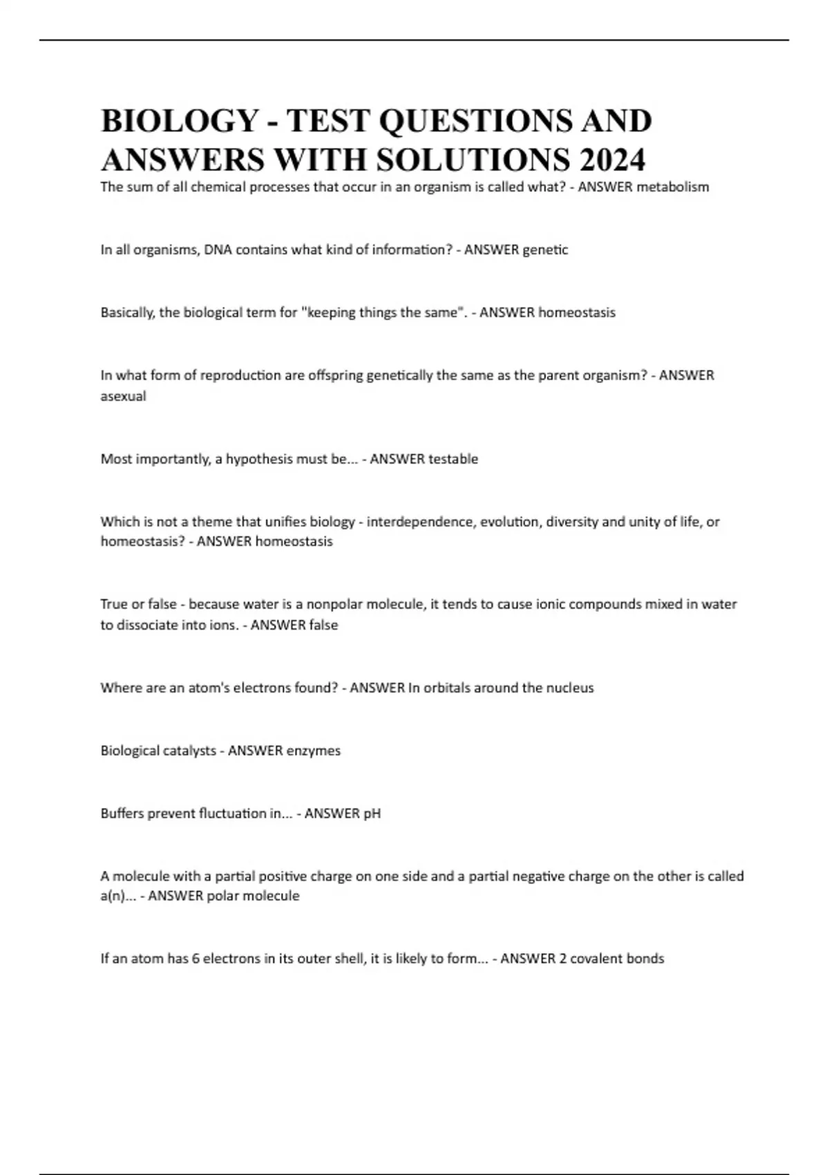 BIOLOGY - TEST QUESTIONS AND ANSWERS WITH SOLUTIONS 2024