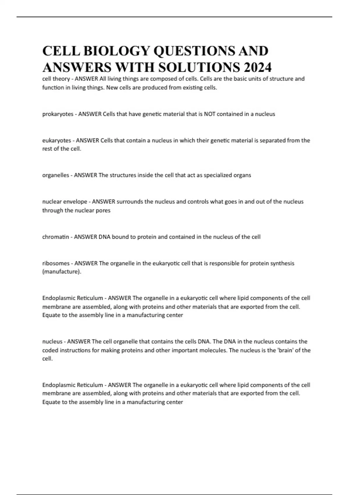 CELL BIOLOGY QUESTIONS AND ANSWERS WITH SOLUTIONS 2024