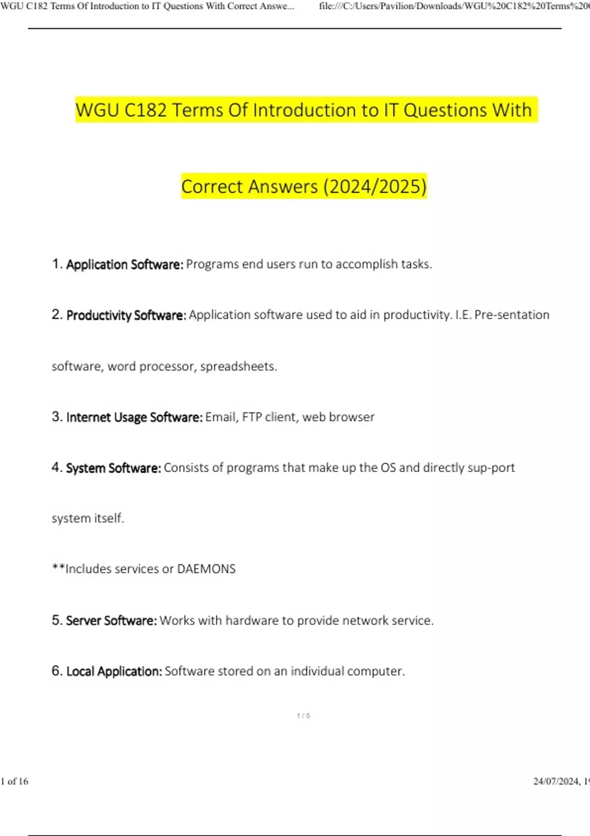 6.LocalApplication:Software stored on an individual computer.WGU C182 Terms Of Introduction to IT Questions With Correct Answe... file:///C:/Users/Pavilion/Downloads/WGU%20C182%20Terms%20Of...